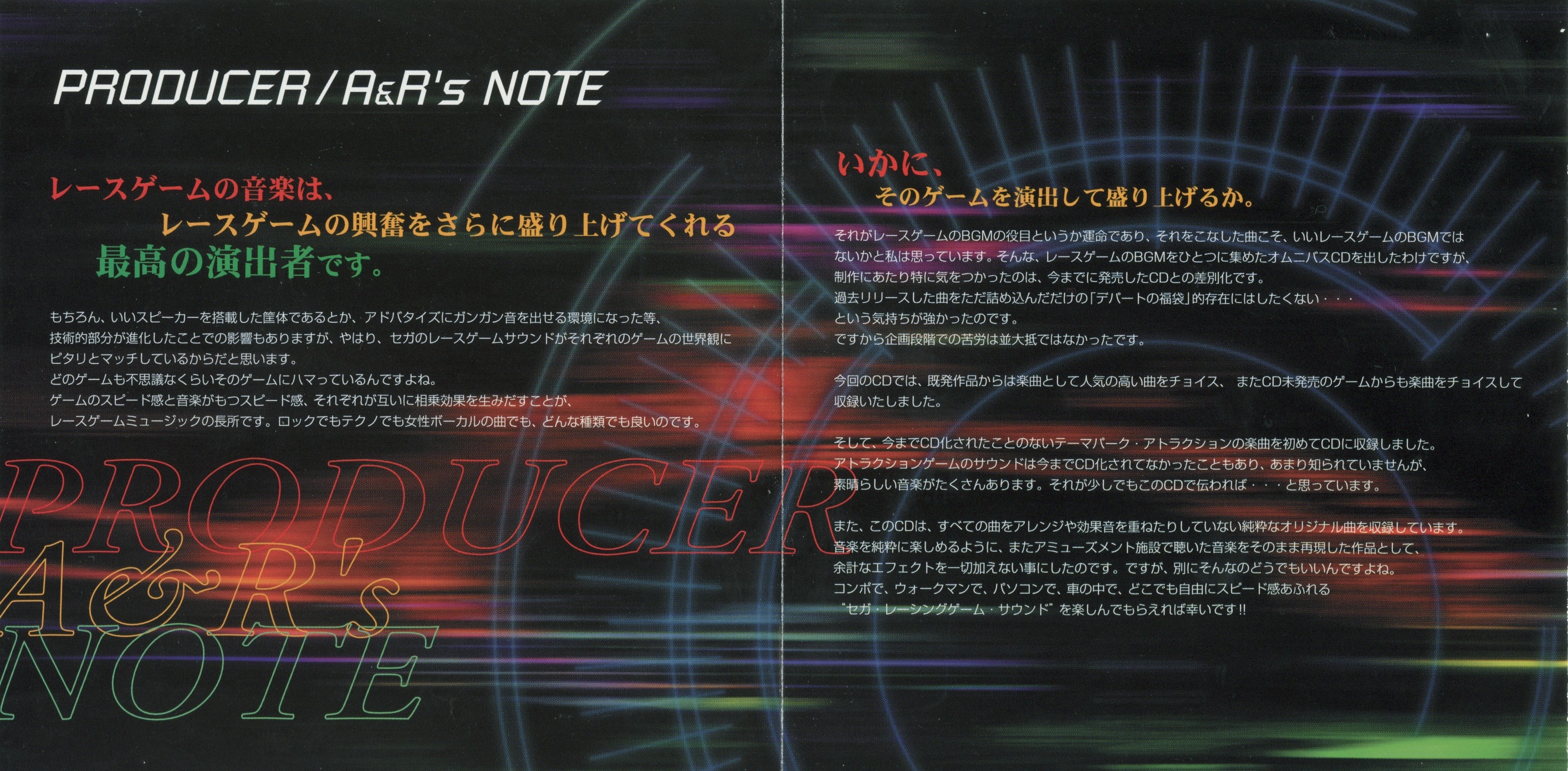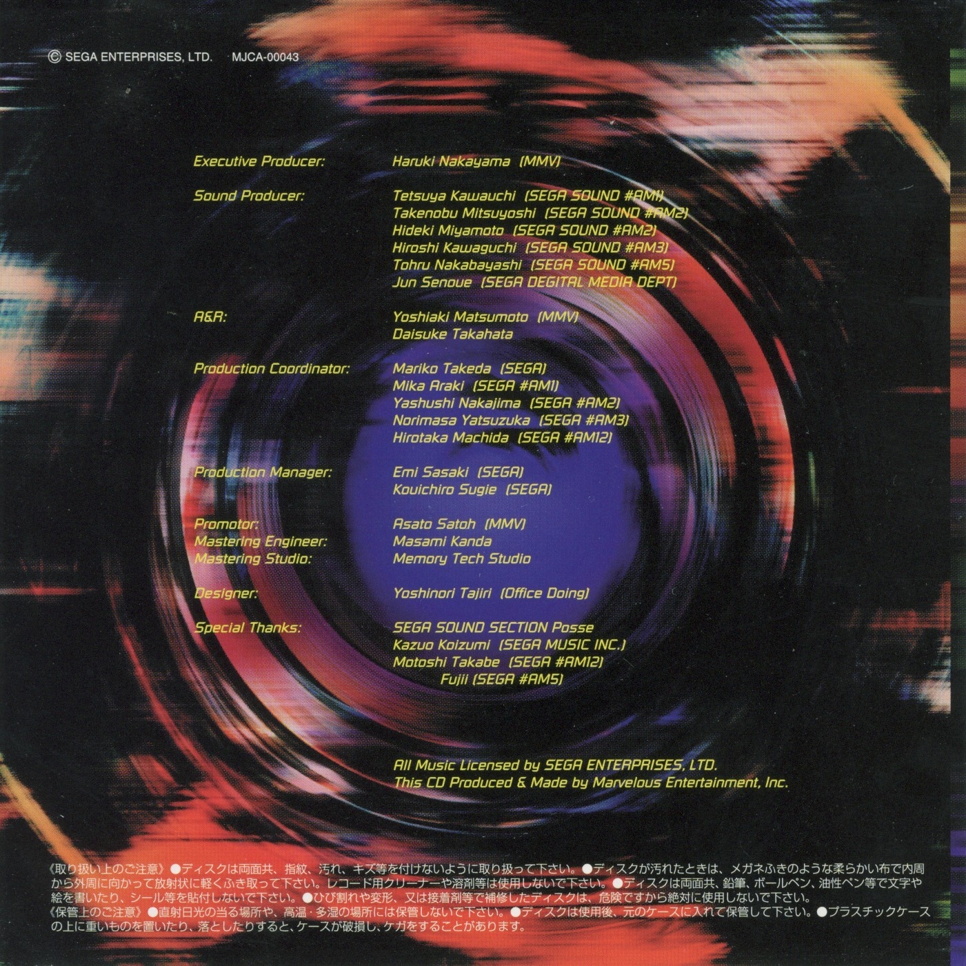 Special Thanks: SEGA SOUND SECTION Posse, Kazuo Koizumi (SEGA MUSIC INC.), Motoshi Takabe (SEGA #AM12), Fujii (SEGA #AM5)