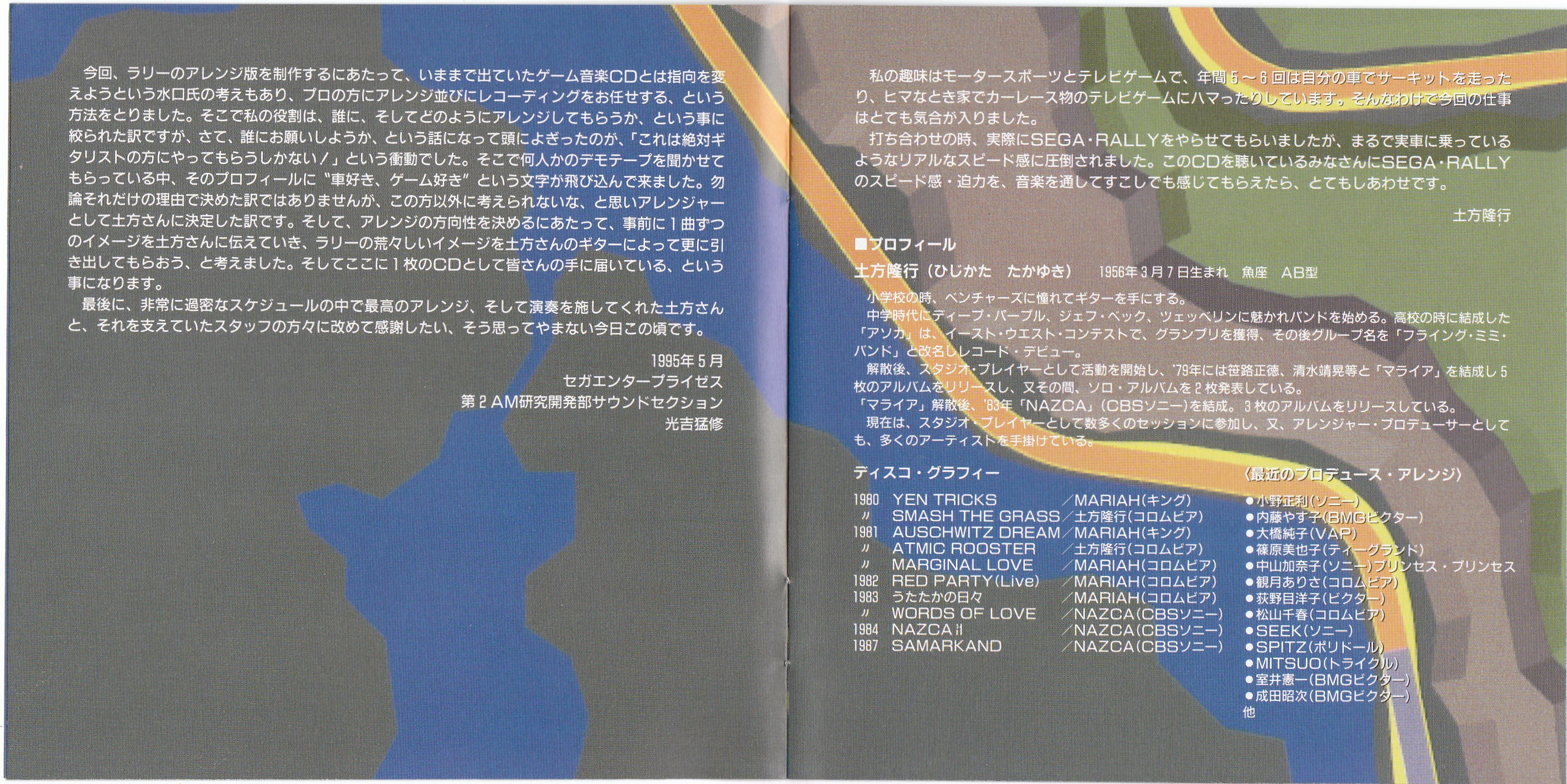 - Takenobu Mitsuyoshi, from Sega Enterprises' AM R&D Dept. #2 Sound Section (May 1995)