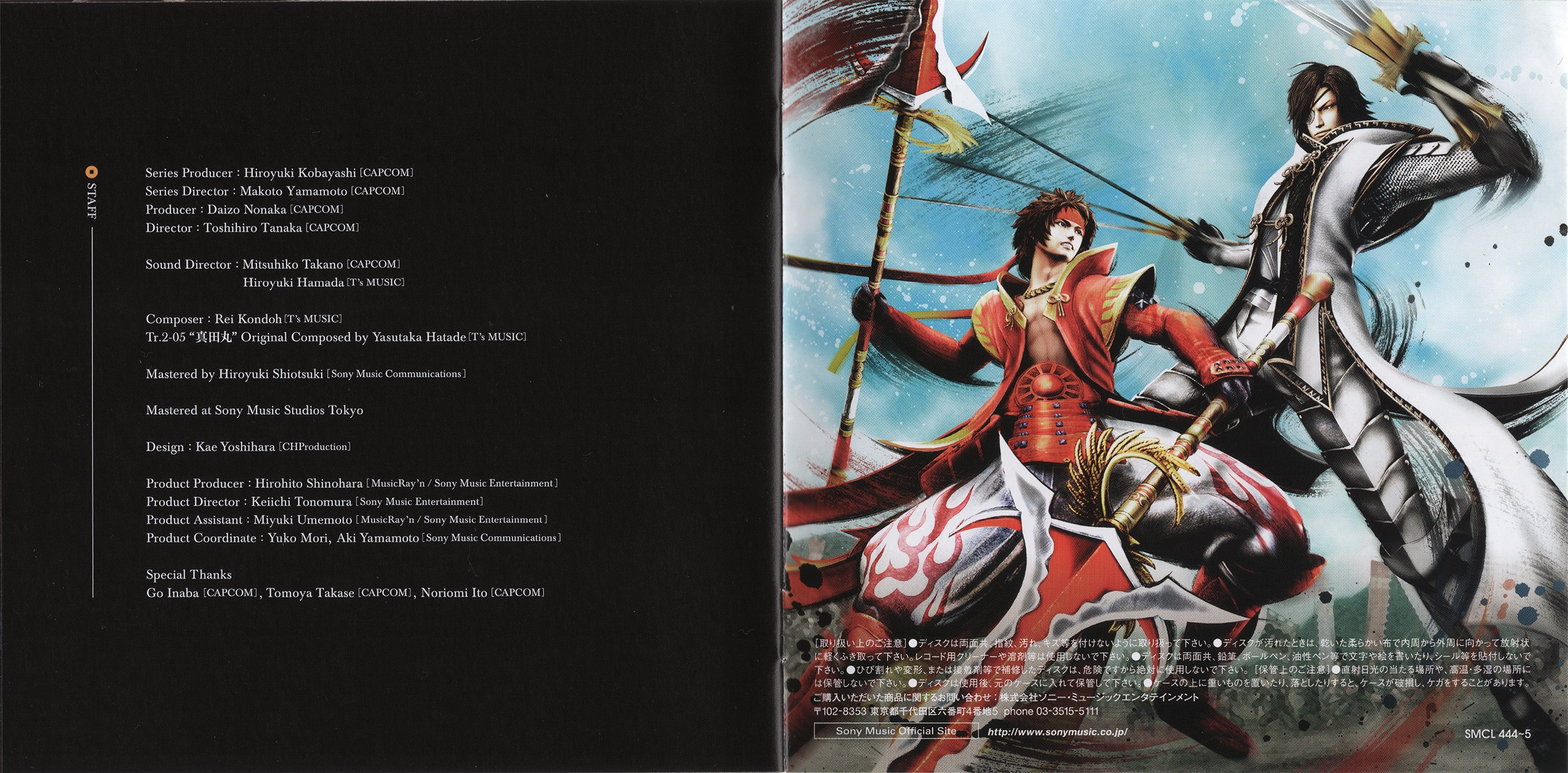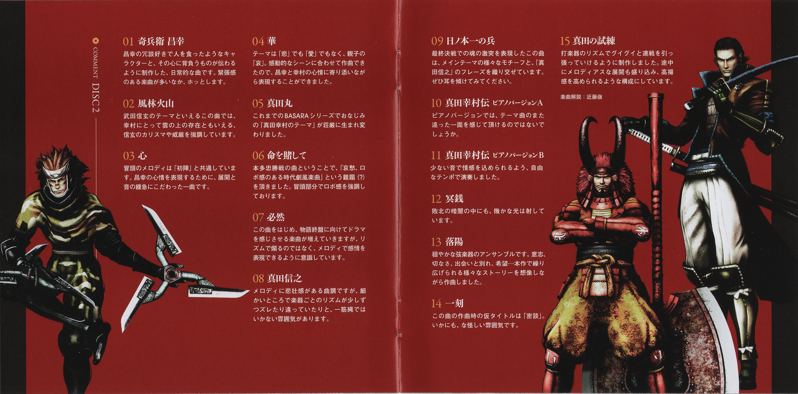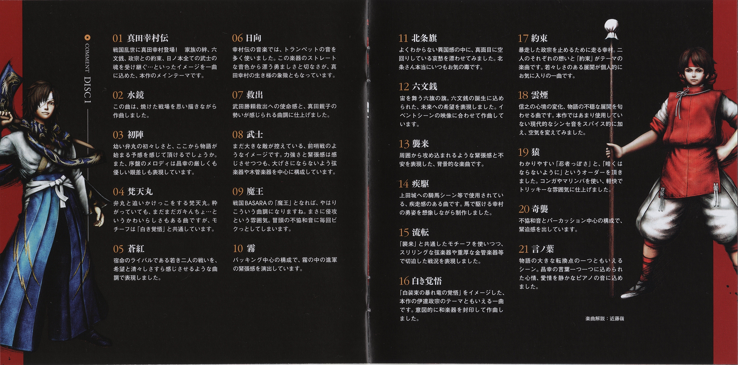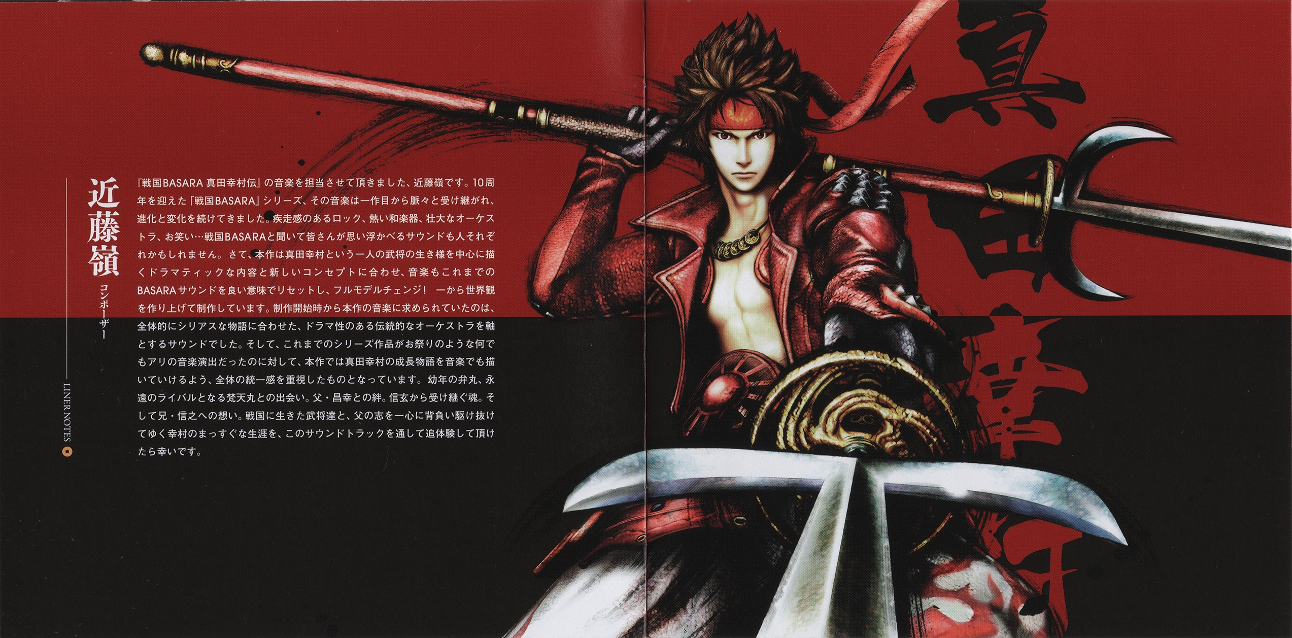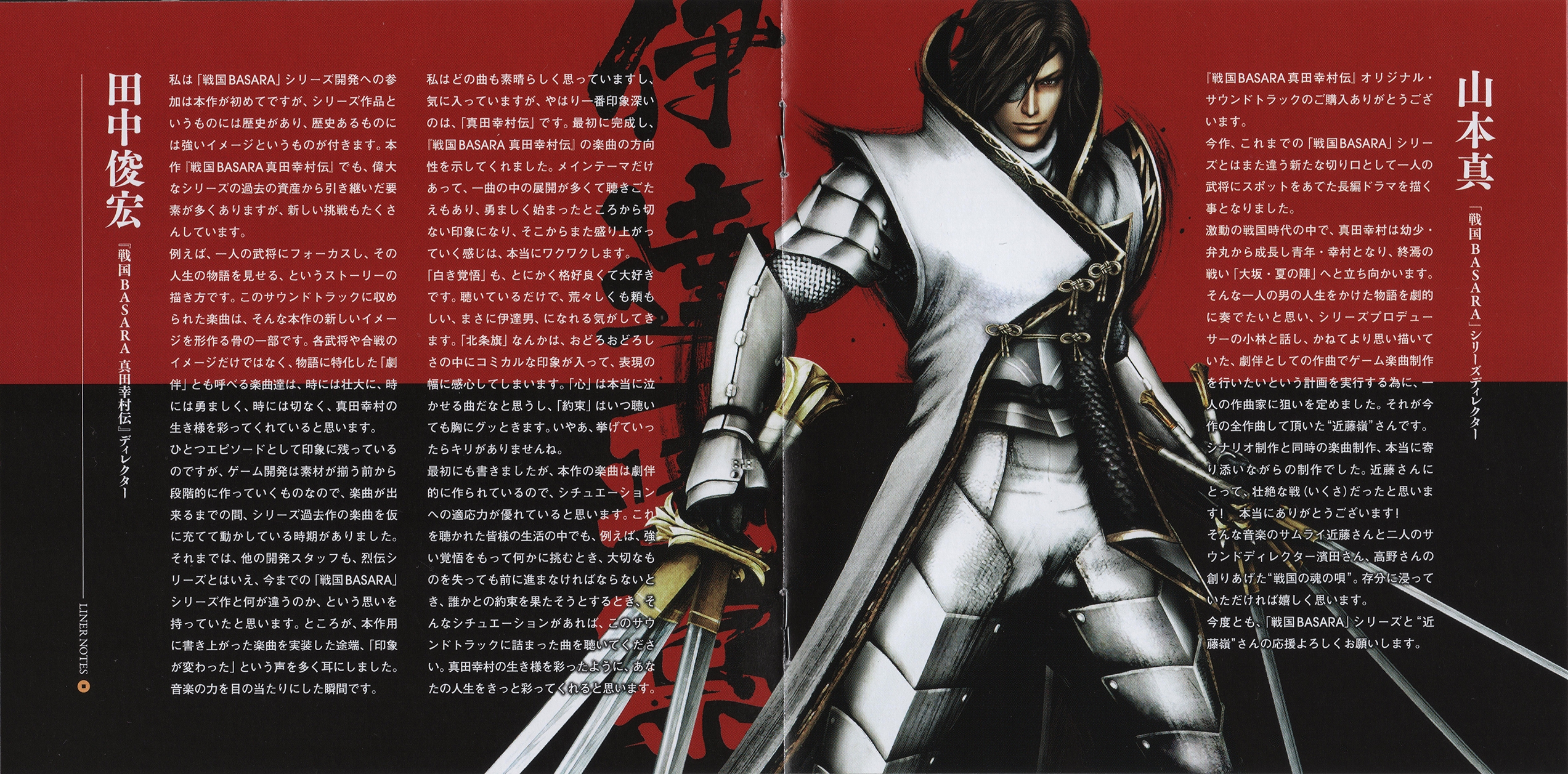 Liner Notes: Rei Kondoh (pg. 3), Toshihiro Tanaka (Sengoku BASARA Sanada Yukimura-den Director) (pg. 5), Makoto Yamamoto (Sengoku BASARA Series Director) (pg. 6)