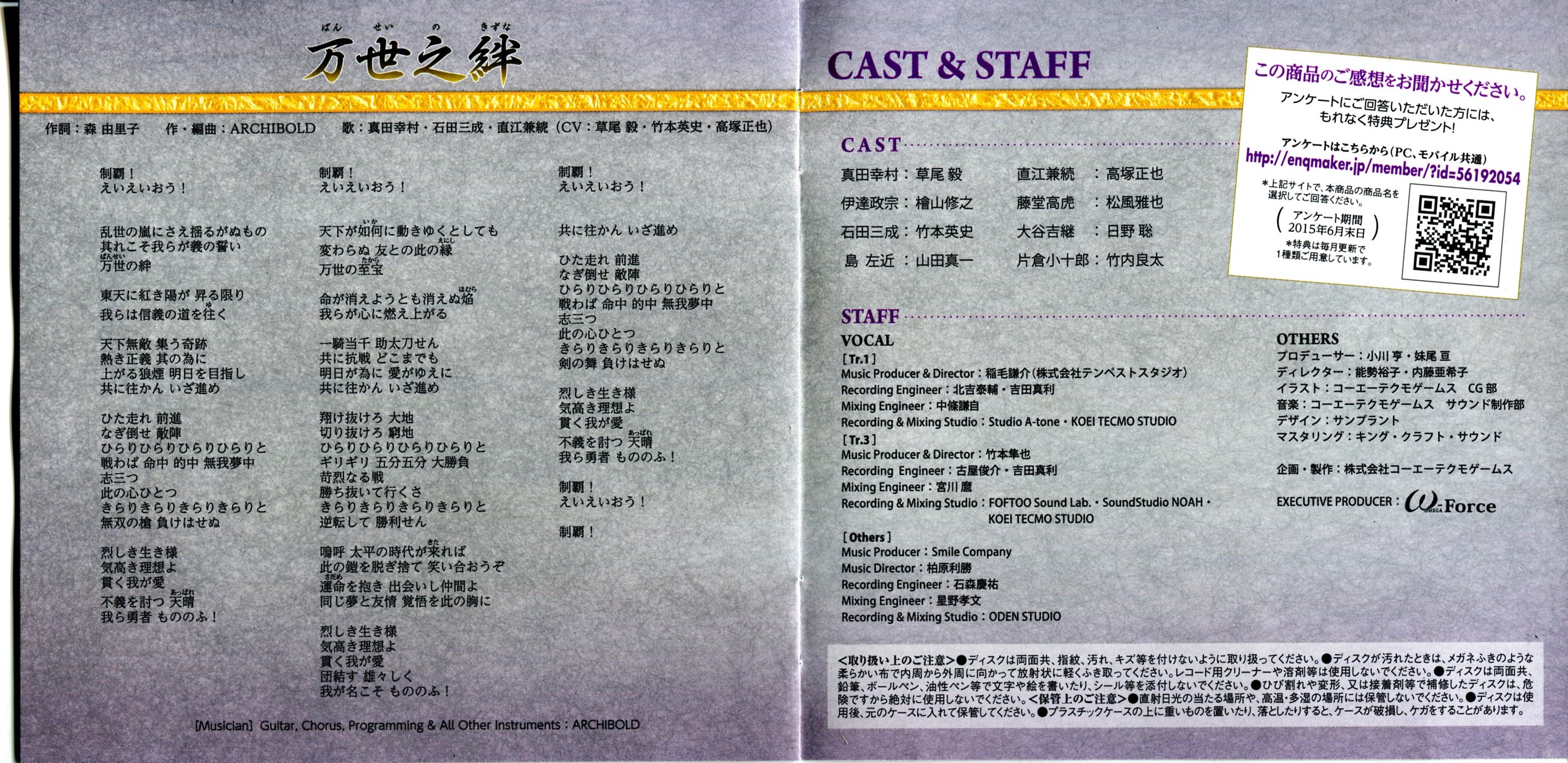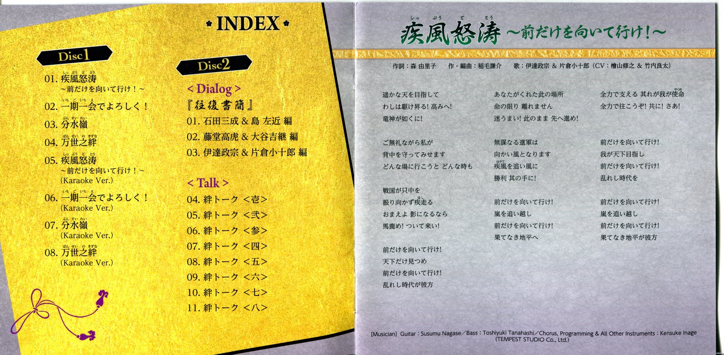 Vocals: Yukimura Sanada, Mitsunari Ishida, Kanetsugu Naoe (CV: Takeshi Kusao, Eiji Takemoto, Masaya Takatsuka)