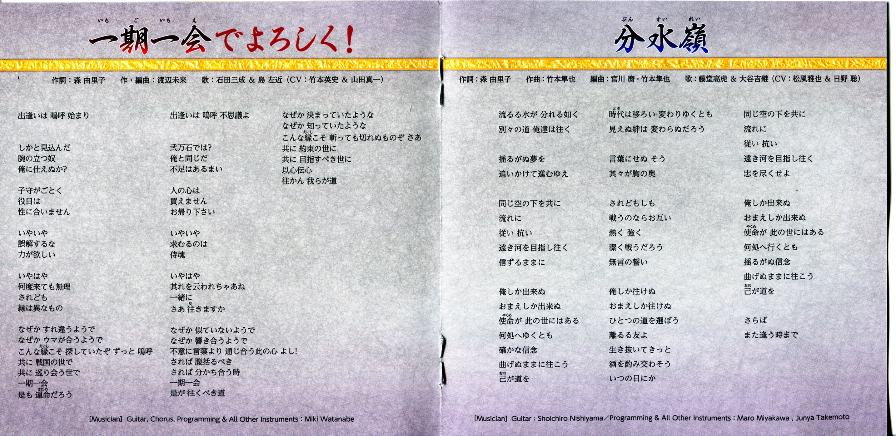 Vocals: Masamune Date & Kojuro Katakura (CV: Nobuyuki Hiyama & Ryota Takeuchi)