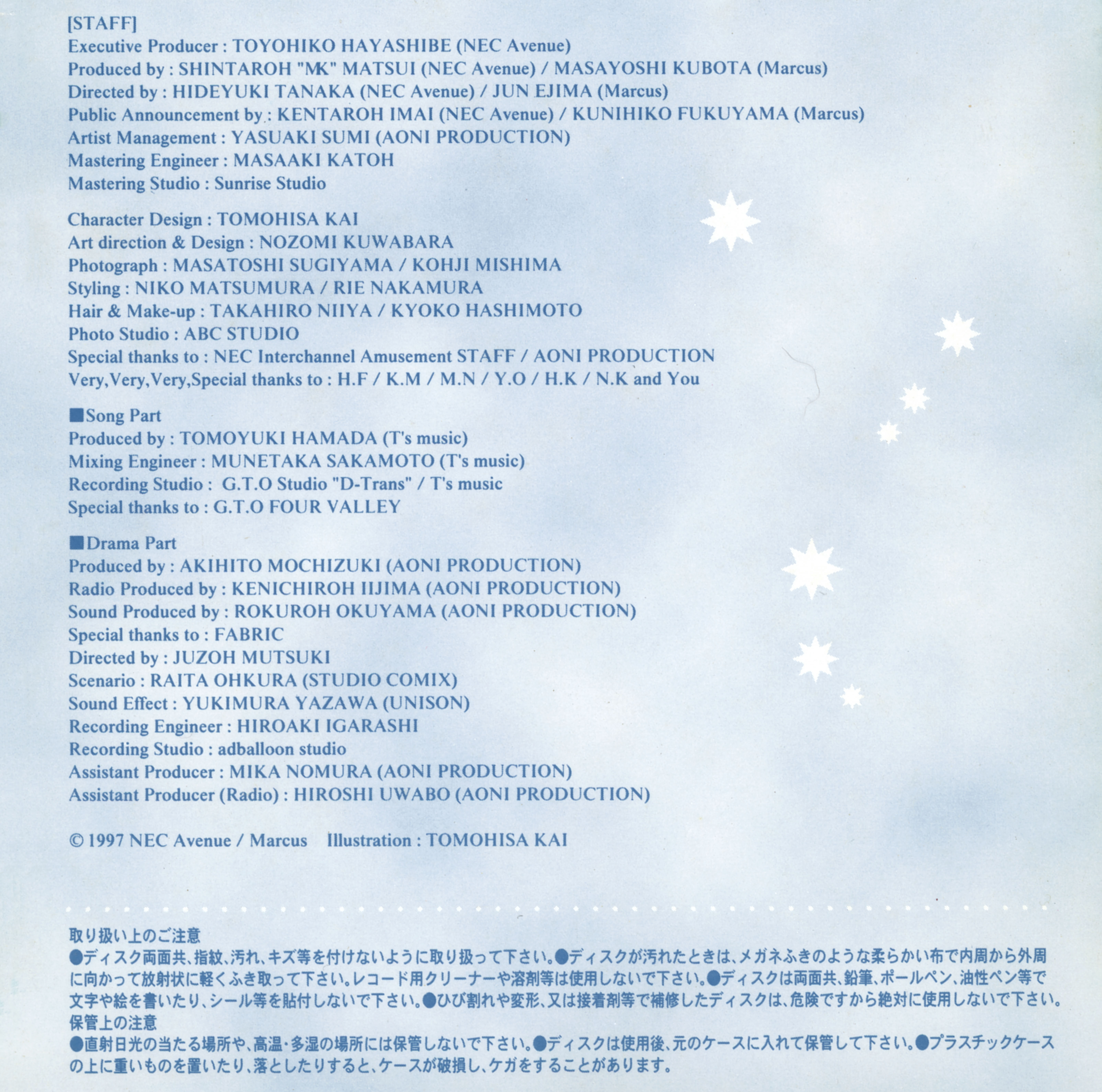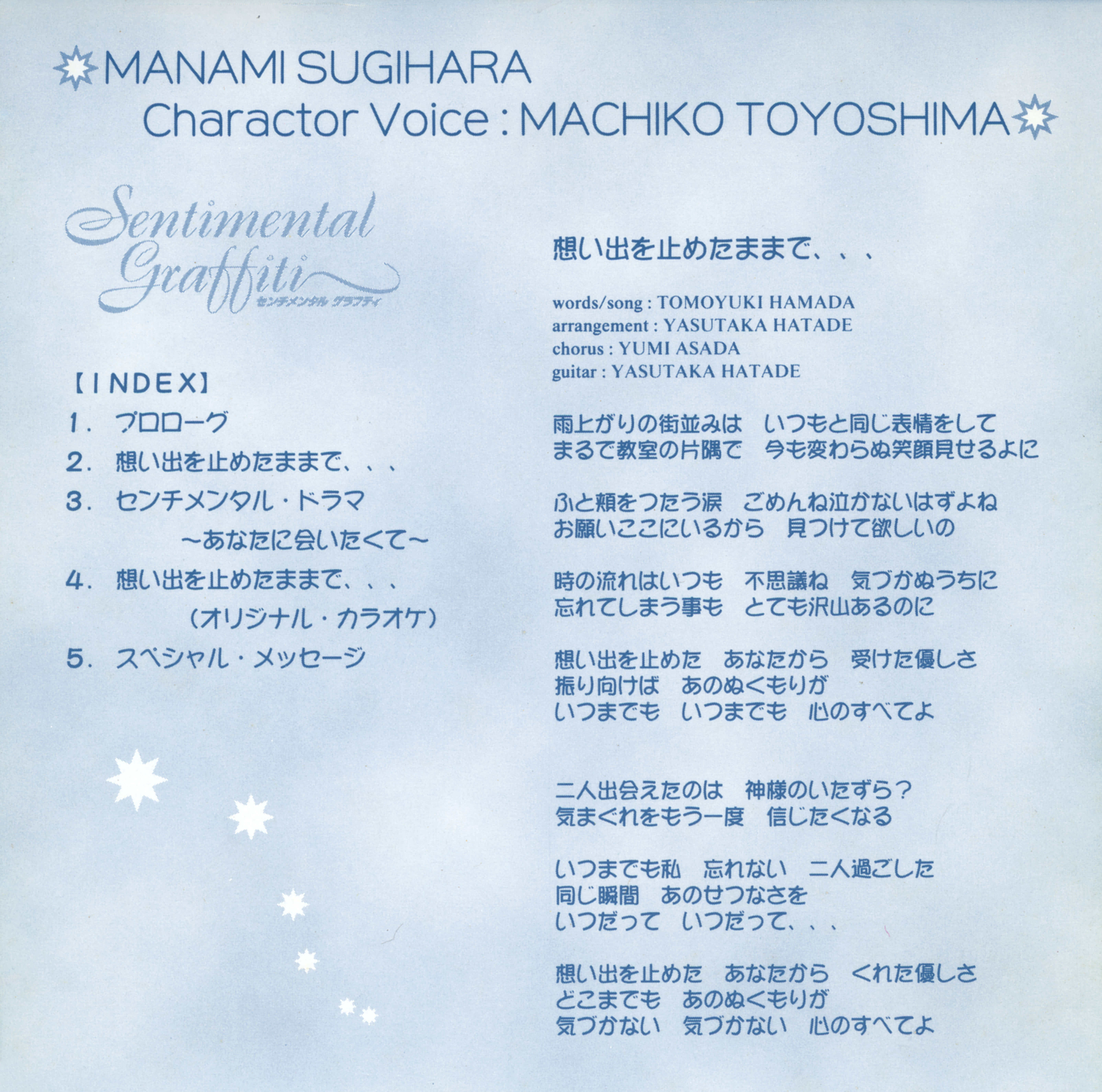 Track 2 - Composition: Tomoyuki Hamada / Arrangement: Yasutaka Hatade / Lyrics: Tomoyuki Hamata / Vocal: Machiko Toyoshima