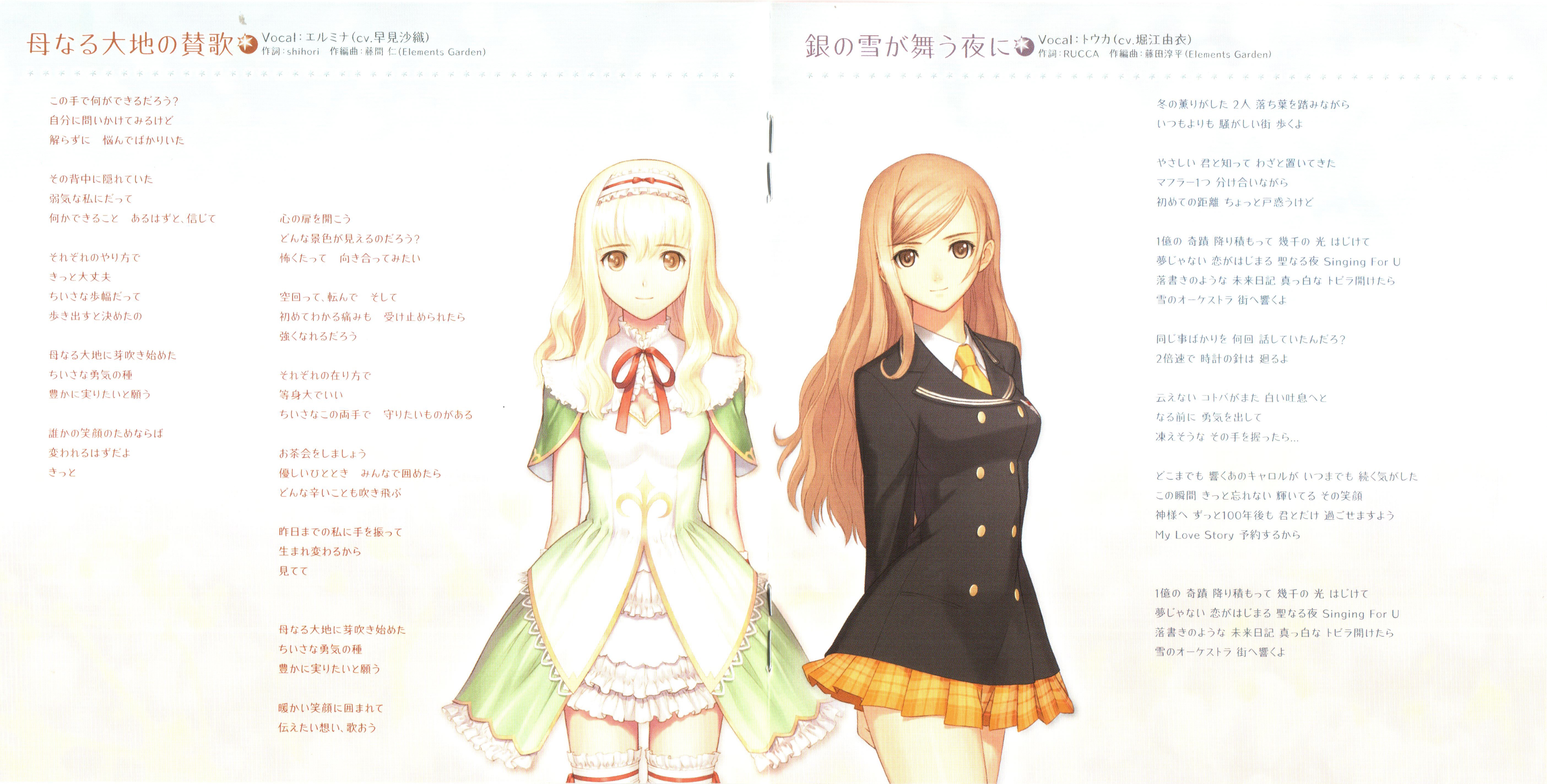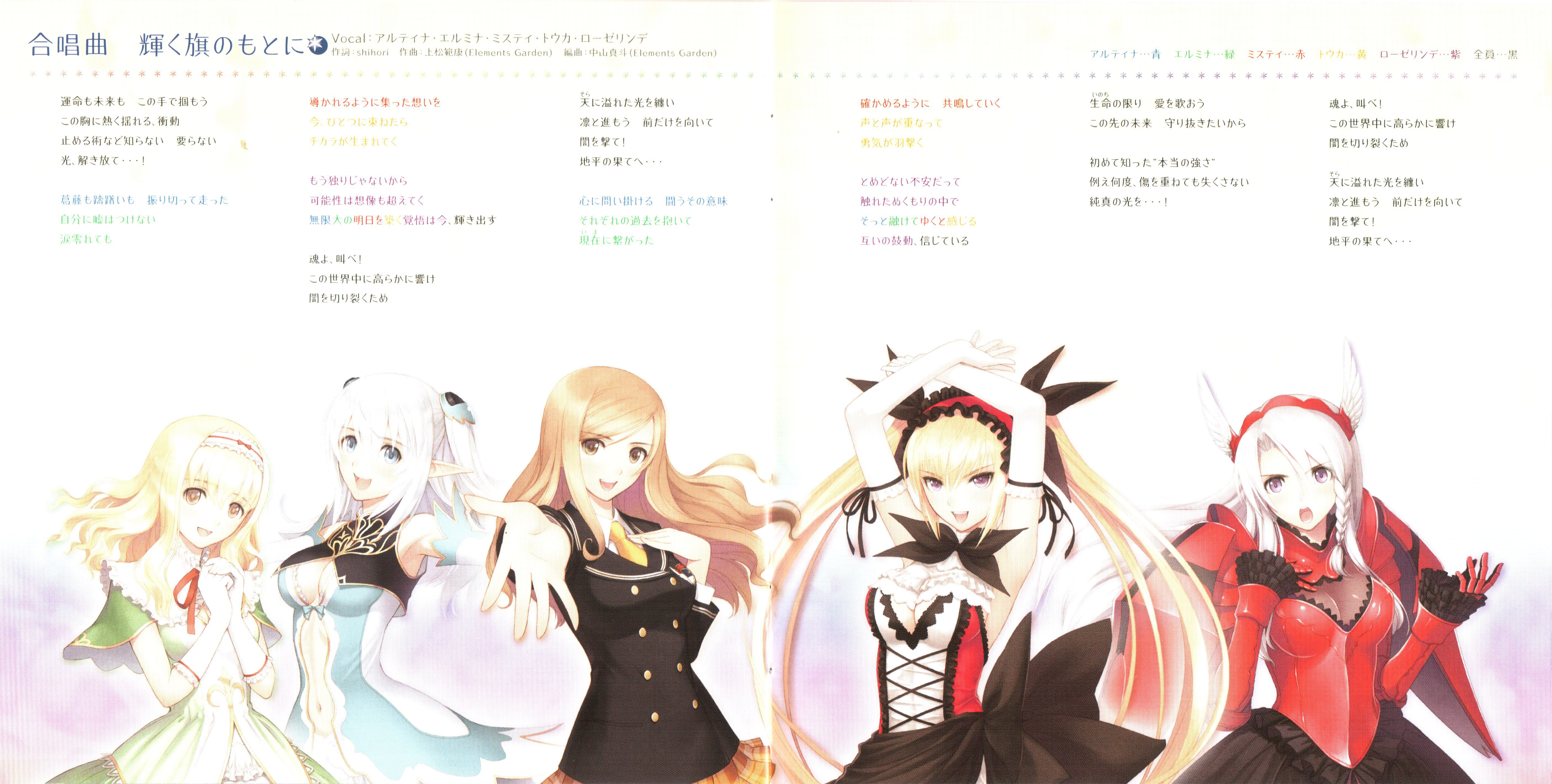 Vocal: Altina (CV: Marina Inoue), Elmina (CV: Saori Hayami), Misty (CV: Yukari Tamura), Touka (CV: Yui Horie), Roselinde (CV: Houko Kuwashima)