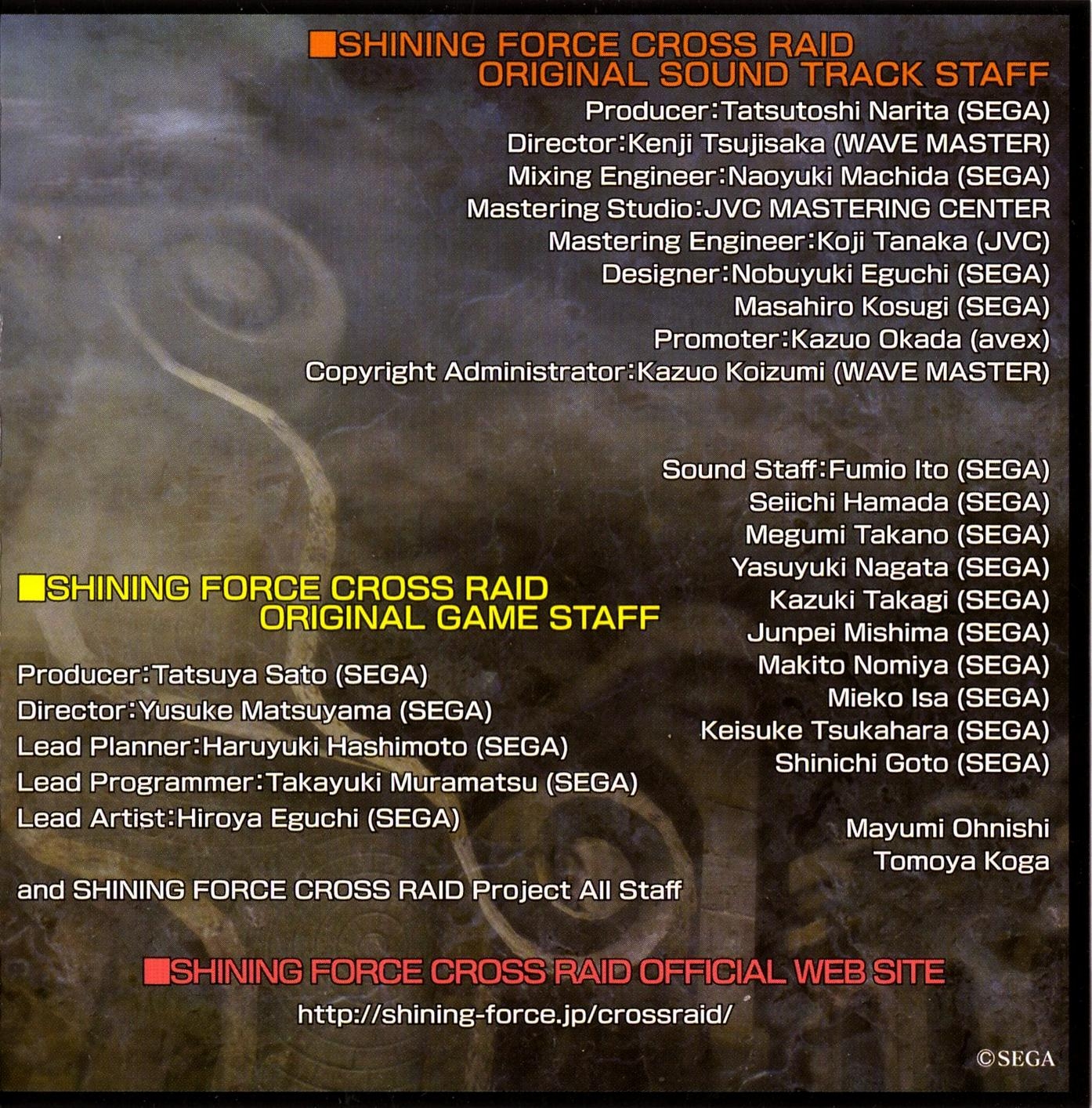 =SHINING FORCE CROSS RAID ORIGINAL GAME STAFF=