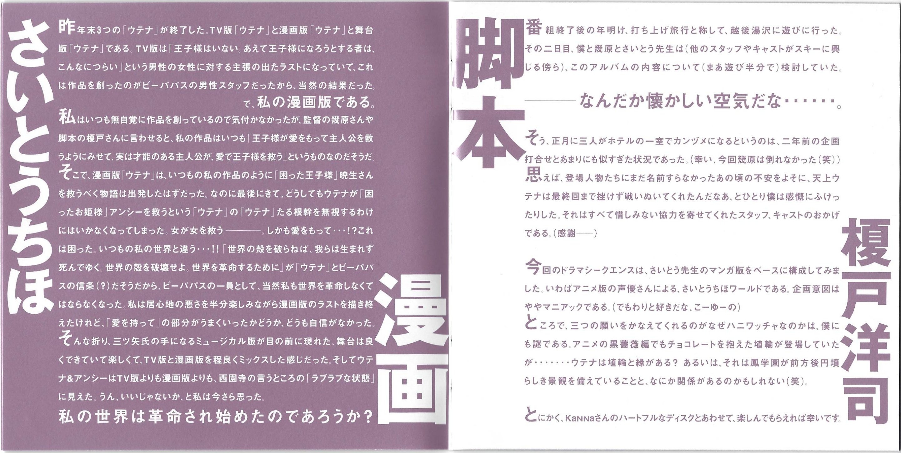 TV TOKYO-kei Animation "Shoujo Kakumei Utena" Yori: Saa, Watashi to Engage Shite...