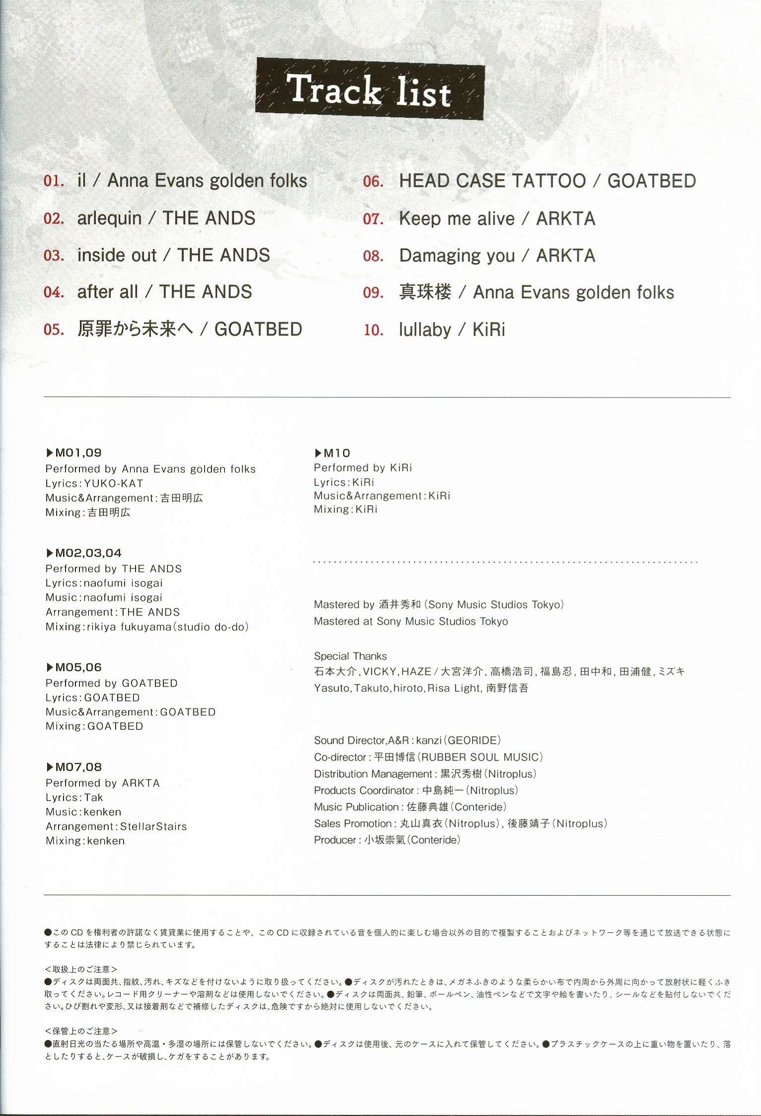 Mastered by Hidekazu Sakai (Sony Music Studios Tokyo)