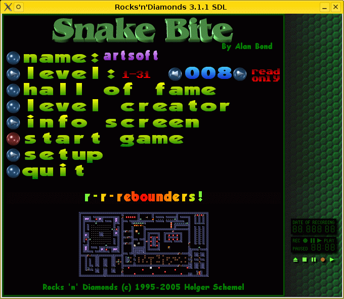 This is the soundtrack used in the Snake Bite level pack by Alan Bond, made for Rocks'n'Diamonds by Artsoft Entertainment. All the songs were originally of the .mod or .it extensions.