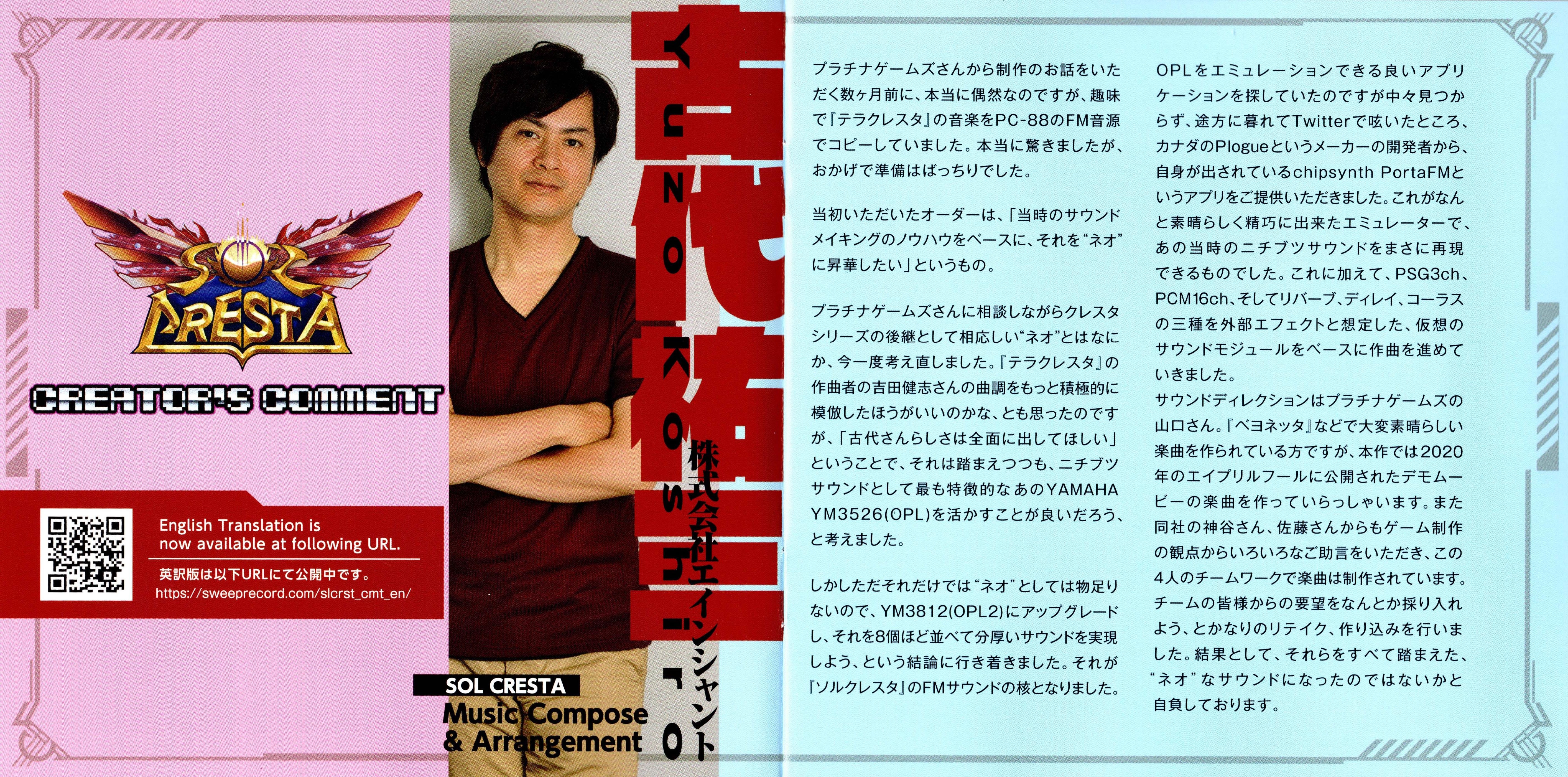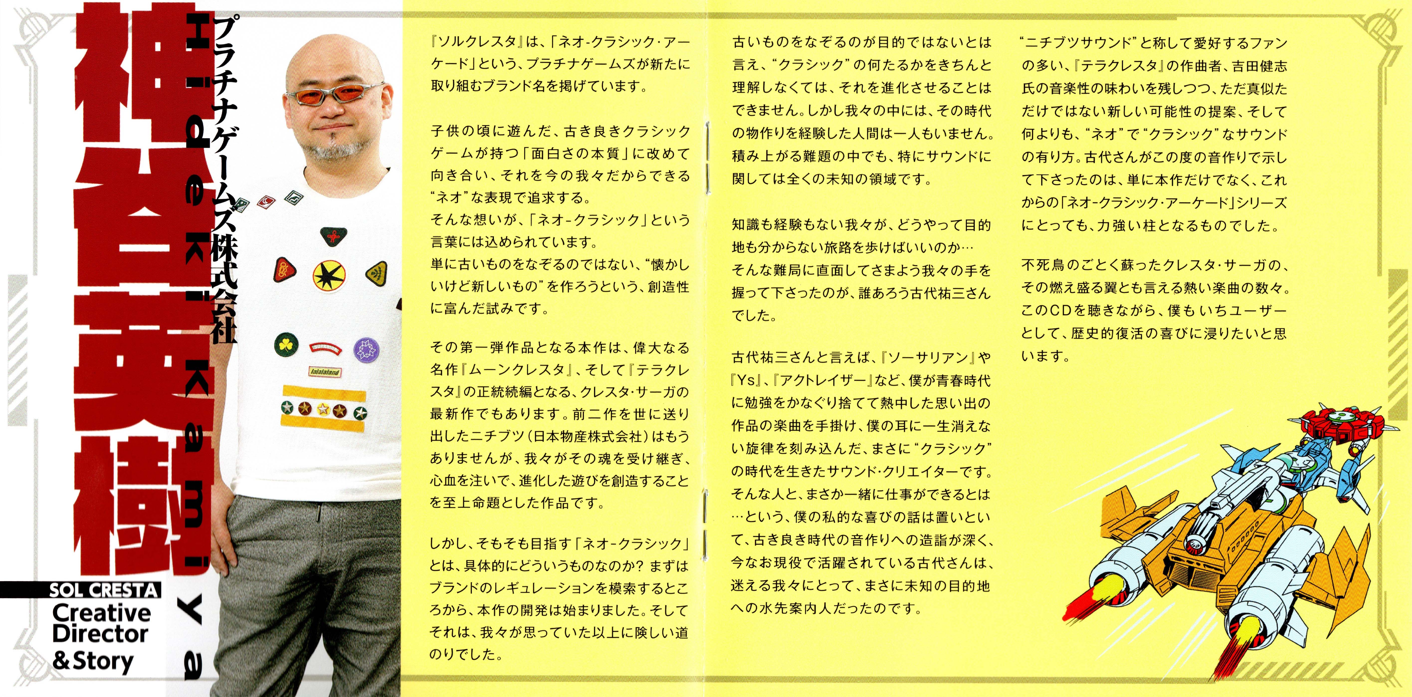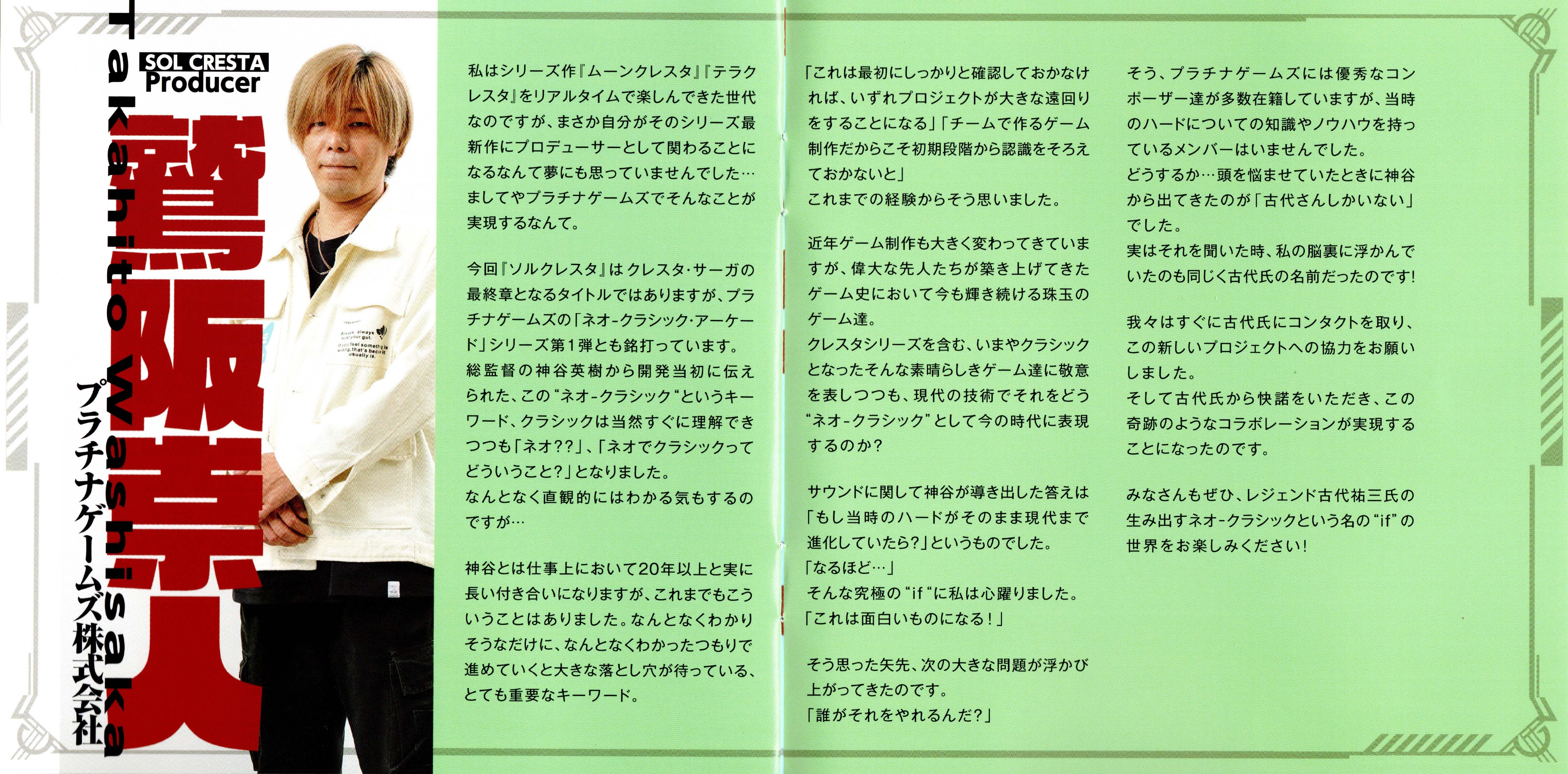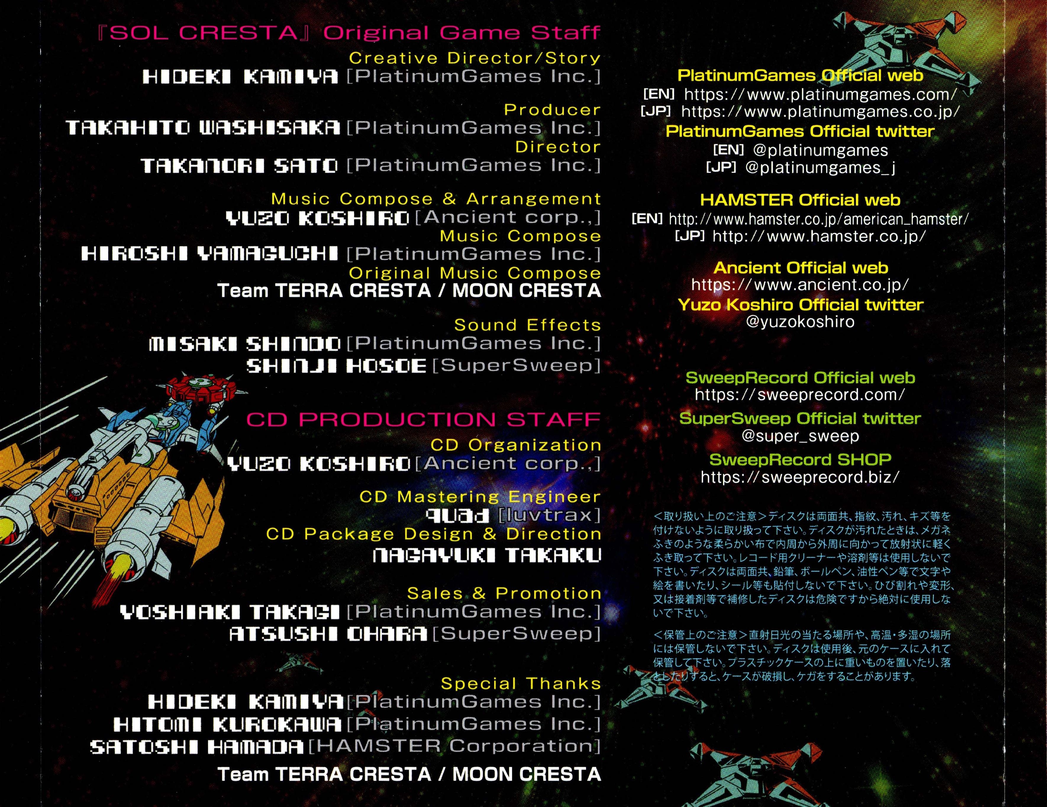 Special Thanks: Hideki Kamiya (PlatinumGames Inc.), Hitomi Kurokawa (PlatinumGames Inc.), Satoshi Hamada (HAMSTER Corporation), Team TERRA CRESTA / MOON CRESTA