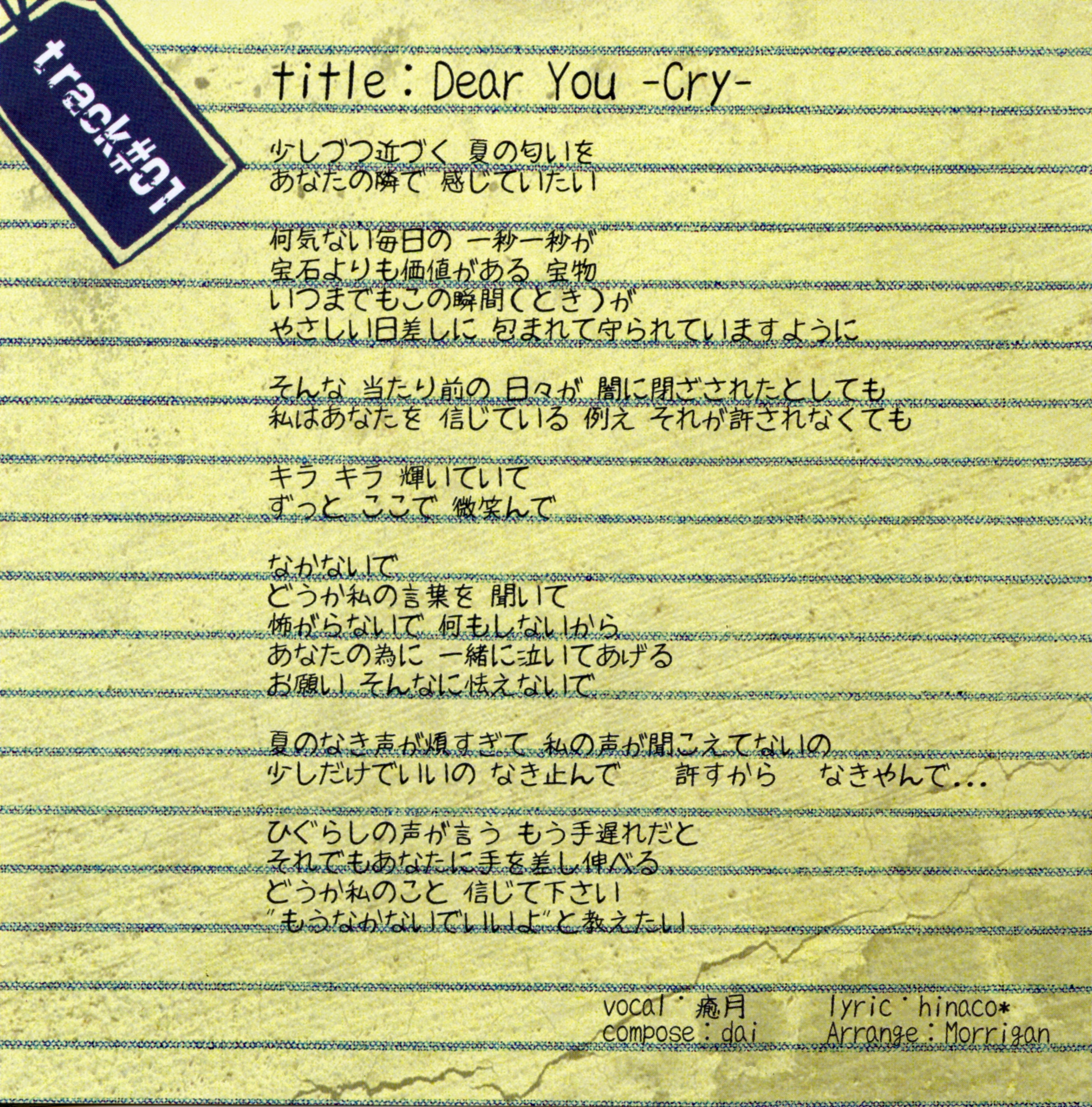 1. | Dear You -Cry- | 5:37 | 10.02 MB | 28.80 MB | get_app | playlist_add |