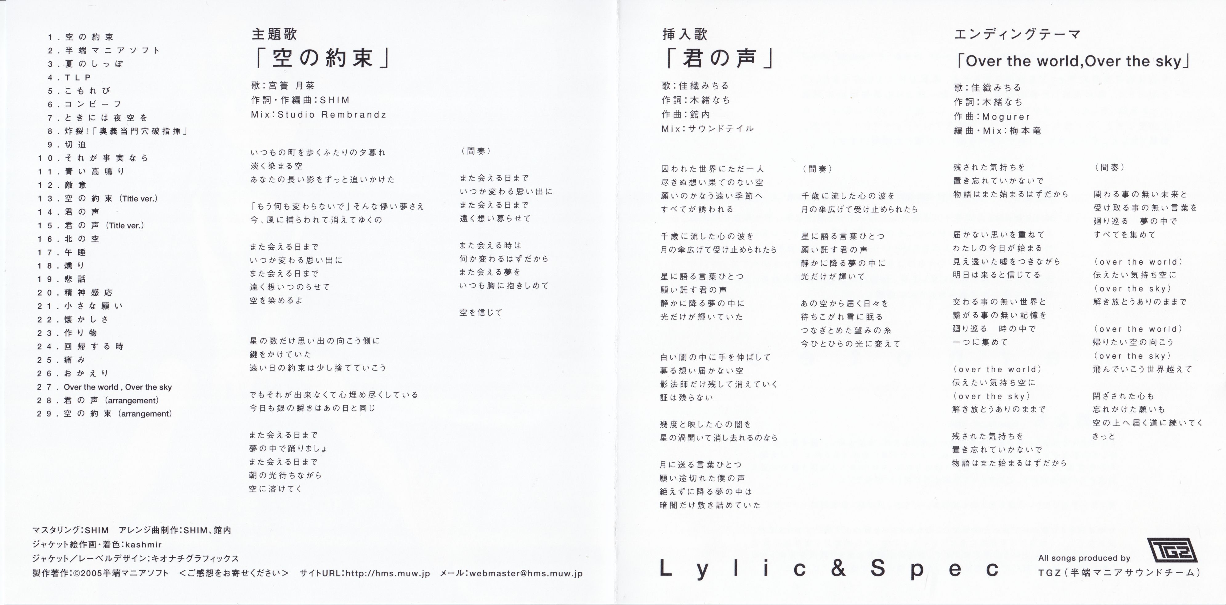 Tateuchi: M15~26 composition & arrangement, M29 arrange