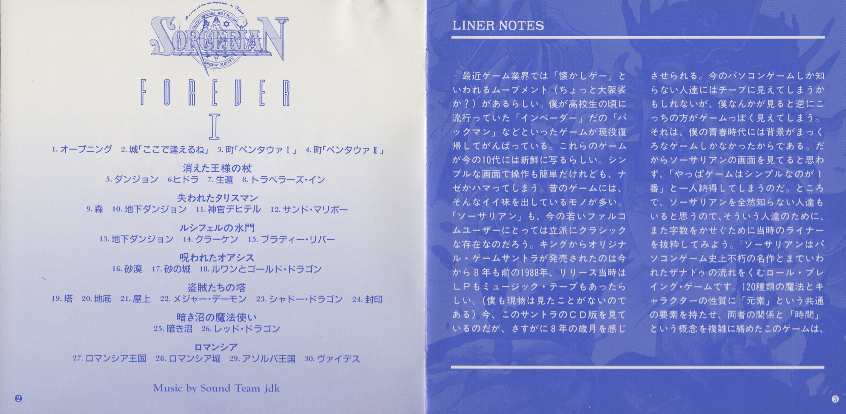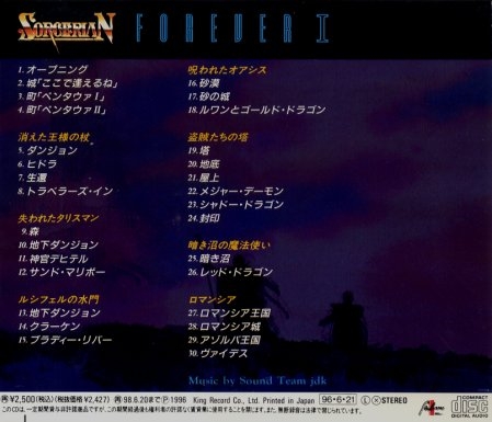 Sorcerian Forever I is a compilation of original sound version music from Sorcerian. The contents of the disc have been enhanced from its original origins.