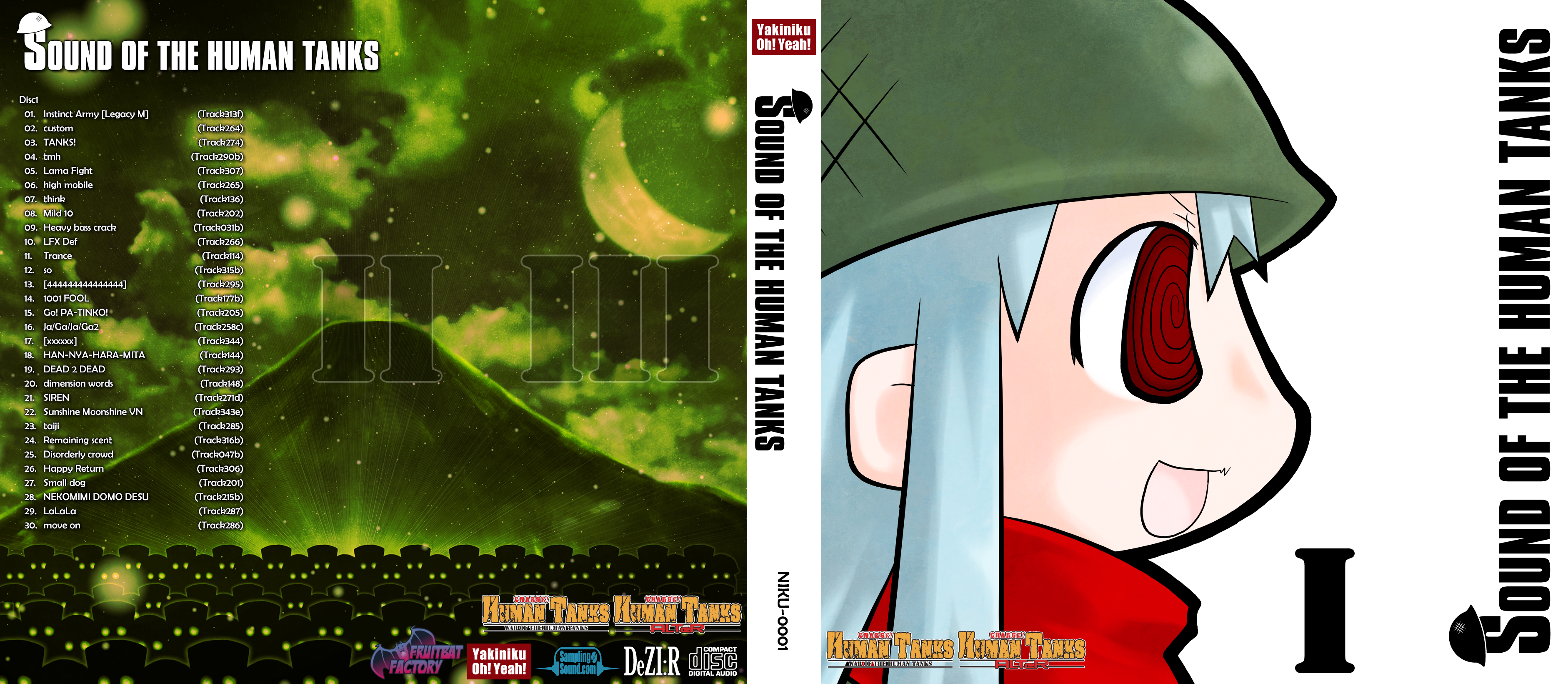 Sound of the Human Tanks has 90 tracks totaling 178 minutes of game music featuring tracks from the first two games in the 'Human Tanks' series, 'War of the Human Tanks' and 'War of the Human Tanks - ALTeR'. Sampling-Sound and DeZI:R have prepared the 'Sound of the Human Tanks' OST for Yakiniku Banzai, featuring the vocal talents of Phan Masaki, Miya Oribe, Kotone Yukino, Light Ageha and Mai.k.