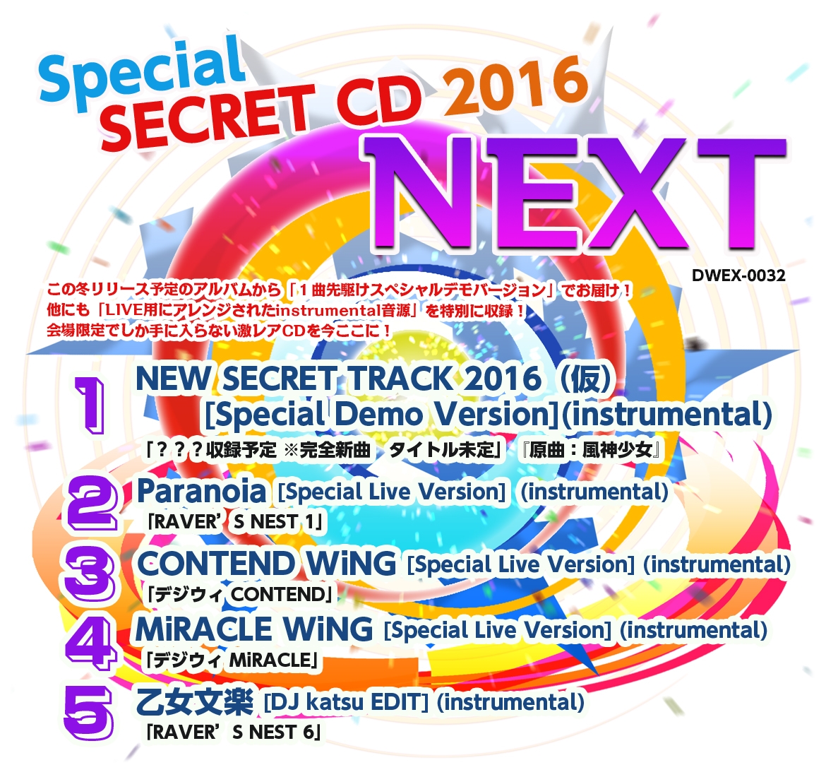 1. | NEW SECRET TRACK 2016 (仮) [Special Demo Version] (Instrumental) | 2:37 | 5.21 MB | 22.60 MB | get_app | playlist_add |