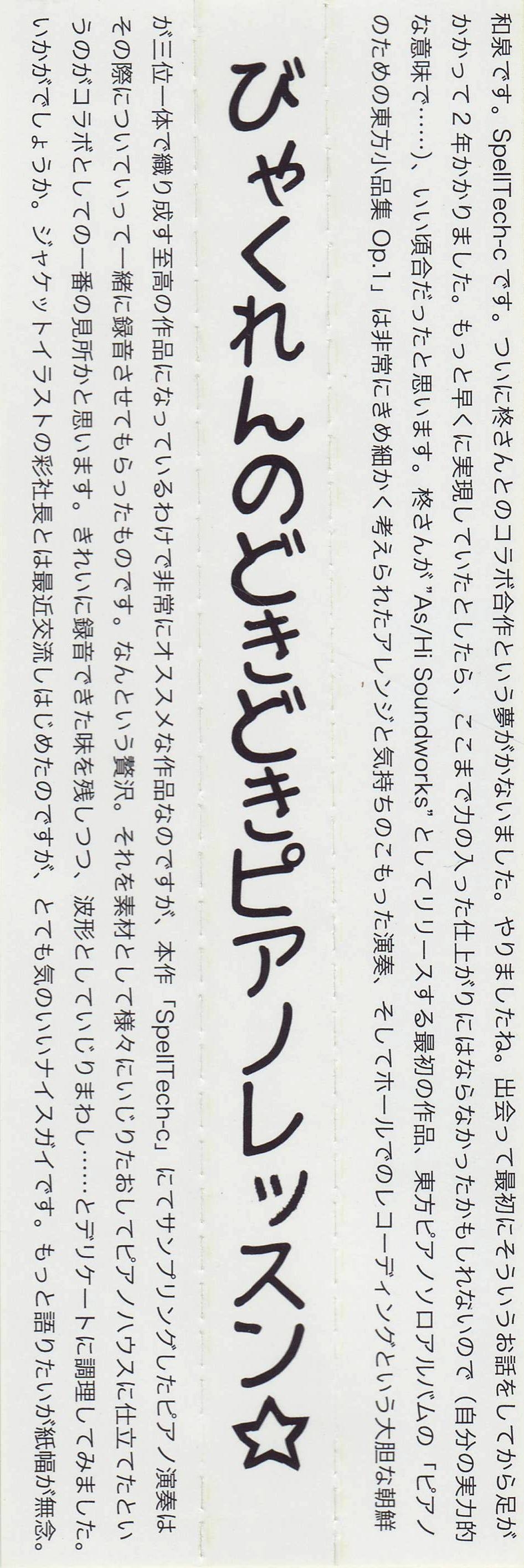 Piano performance by Shusetsu Hi;ragi (As/Hi Soundworks).