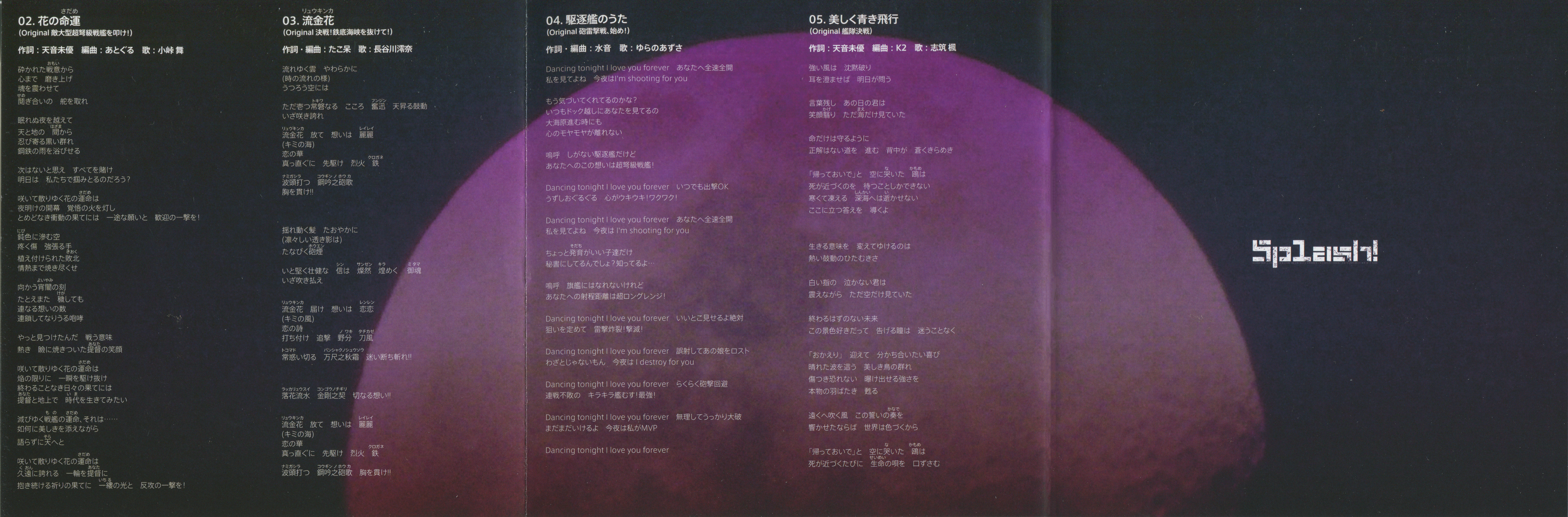 4. | 駆逐艦のうた (砲雷撃戦、始め!) | 4:25 | 8.69 MB | 35.08 MB | get_app | playlist_add |