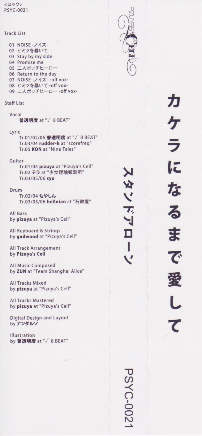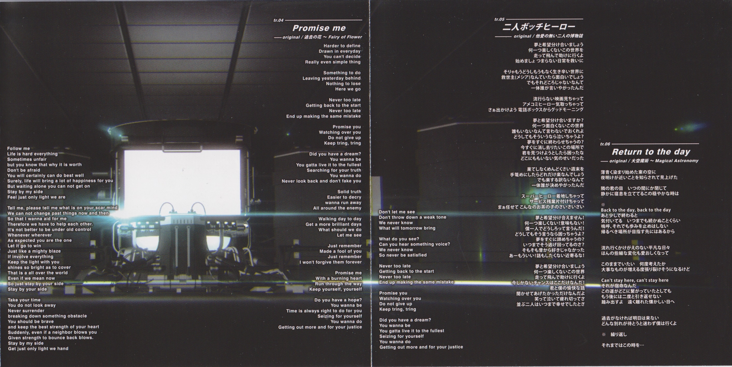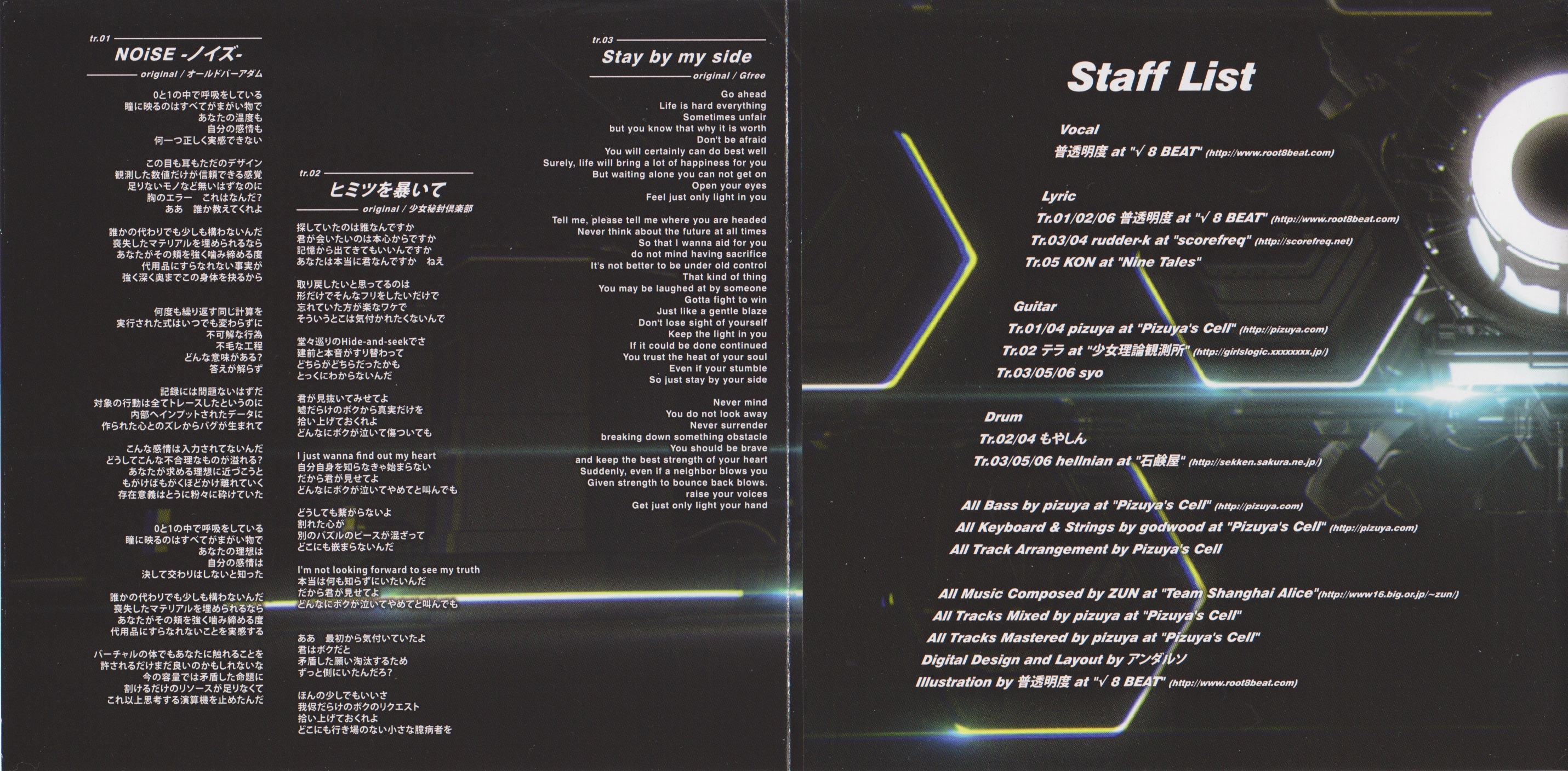 Lyrics Tr.01/02/06 Futoumeido at "√ 8 BEAT", Tr.03/04 rudder-k at "scorefreq", Tr.05 KON at "Nine Tales"