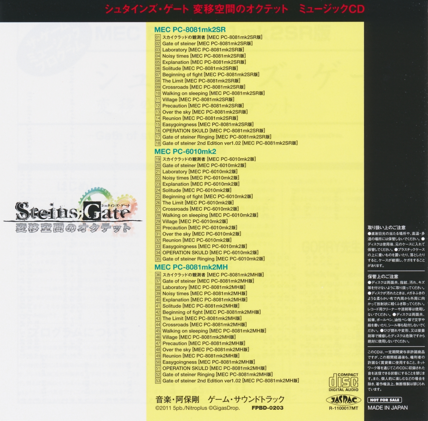 シュタインズ・ゲート 変移空間のオクテット ミュージックCD