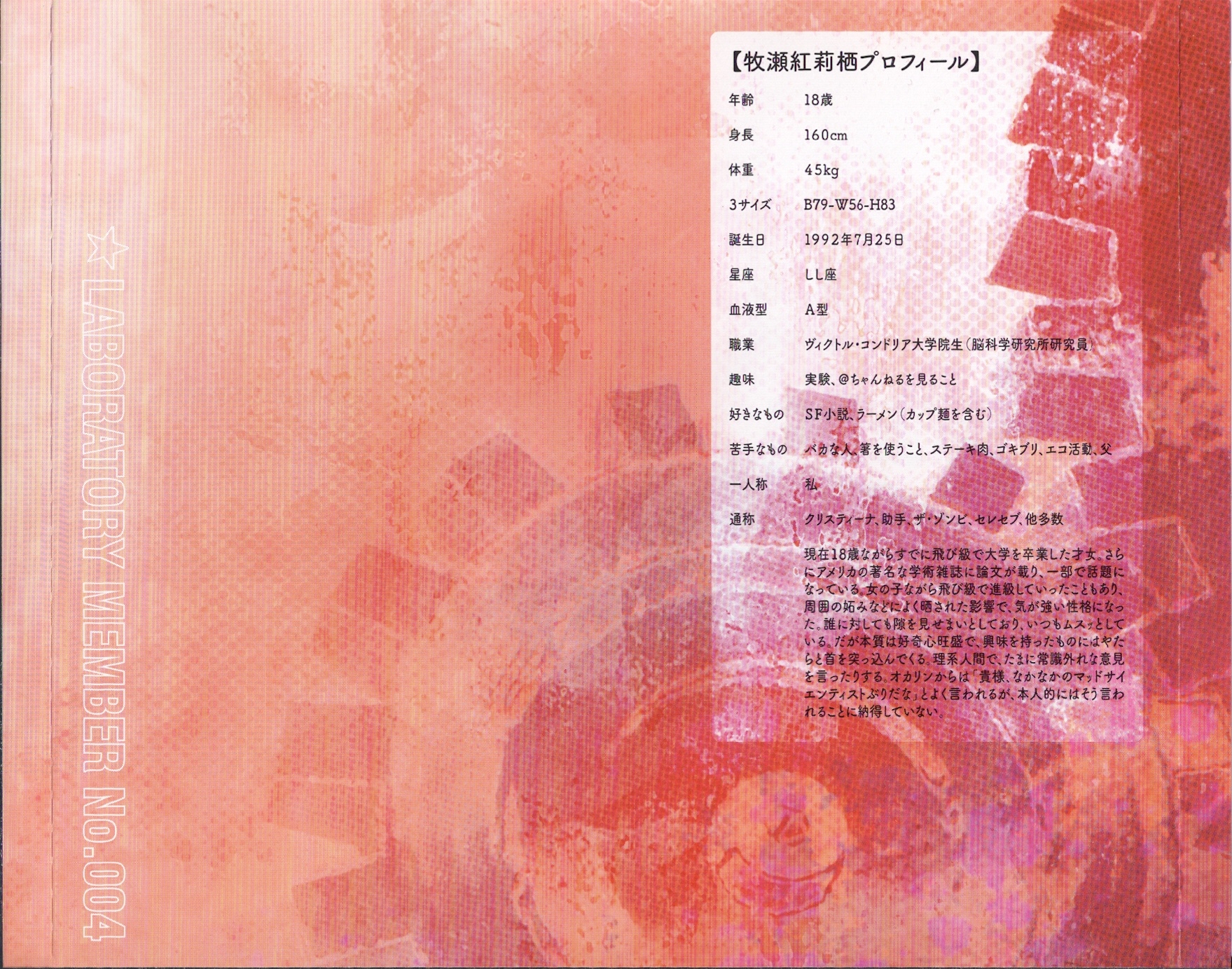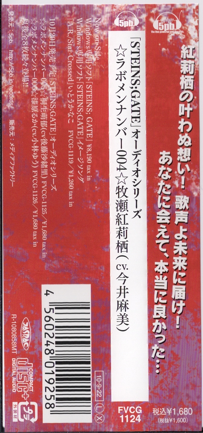 「STEINS;GATE」オーディオシリーズ ☆ラボメンナンバー004☆牧瀬紅莉栖(cv.今井麻美)