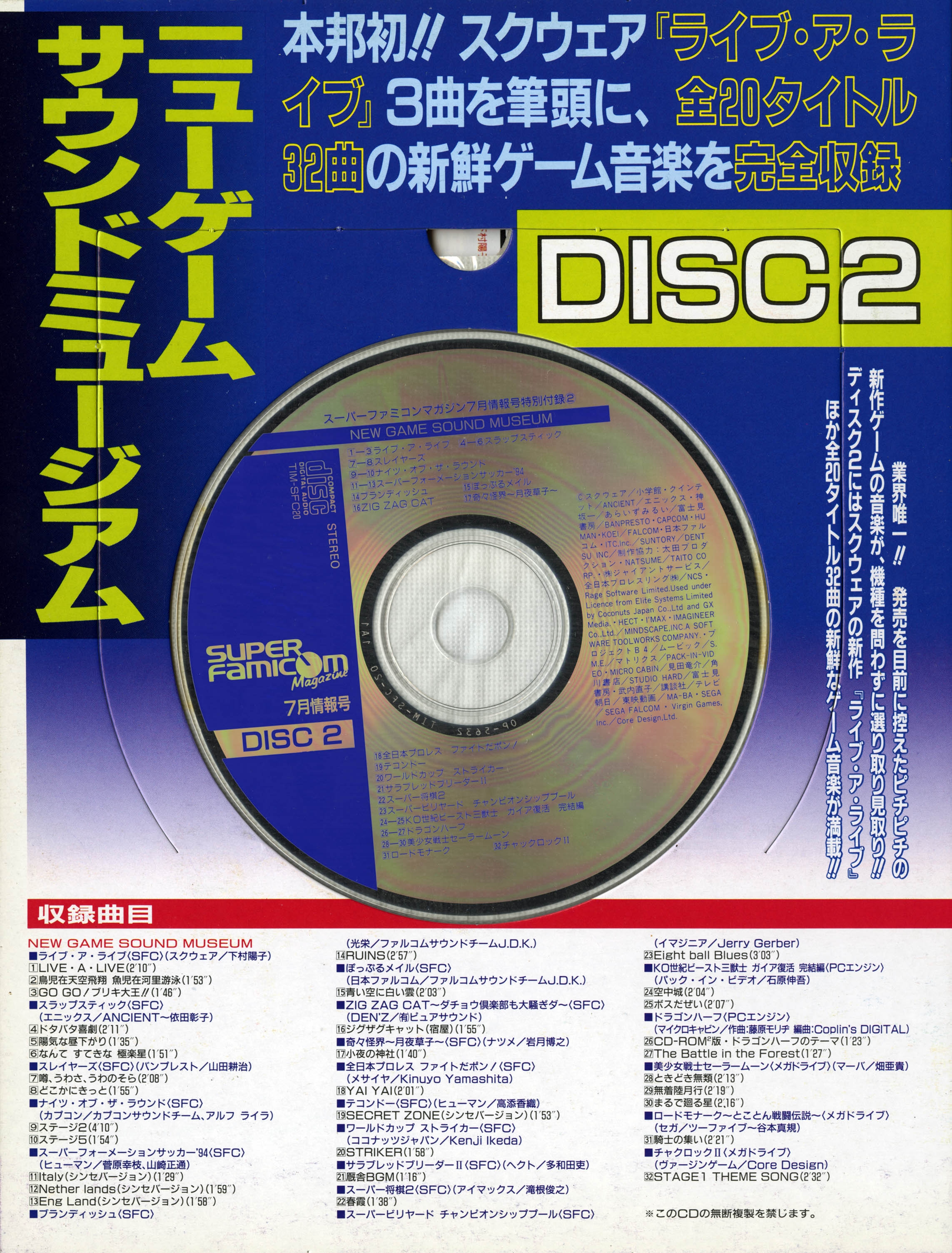 スーパーファミコンマガジン7月情報号特別付録② NEW GAME SOUND MUSEUM