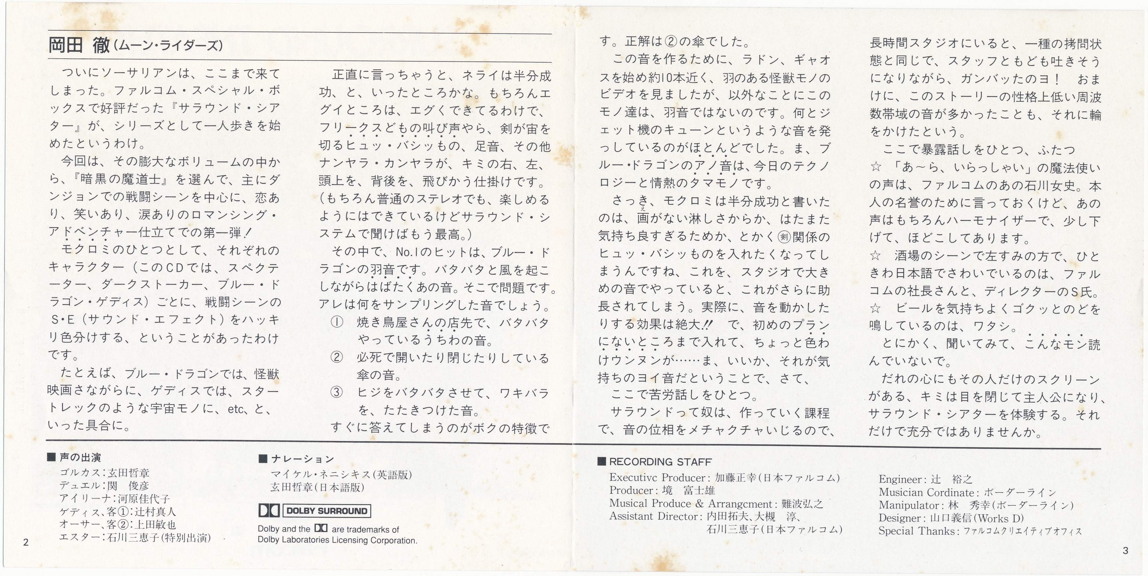 Liner Notes: Toru Okada (Moonriders) (pg. 2, 3)