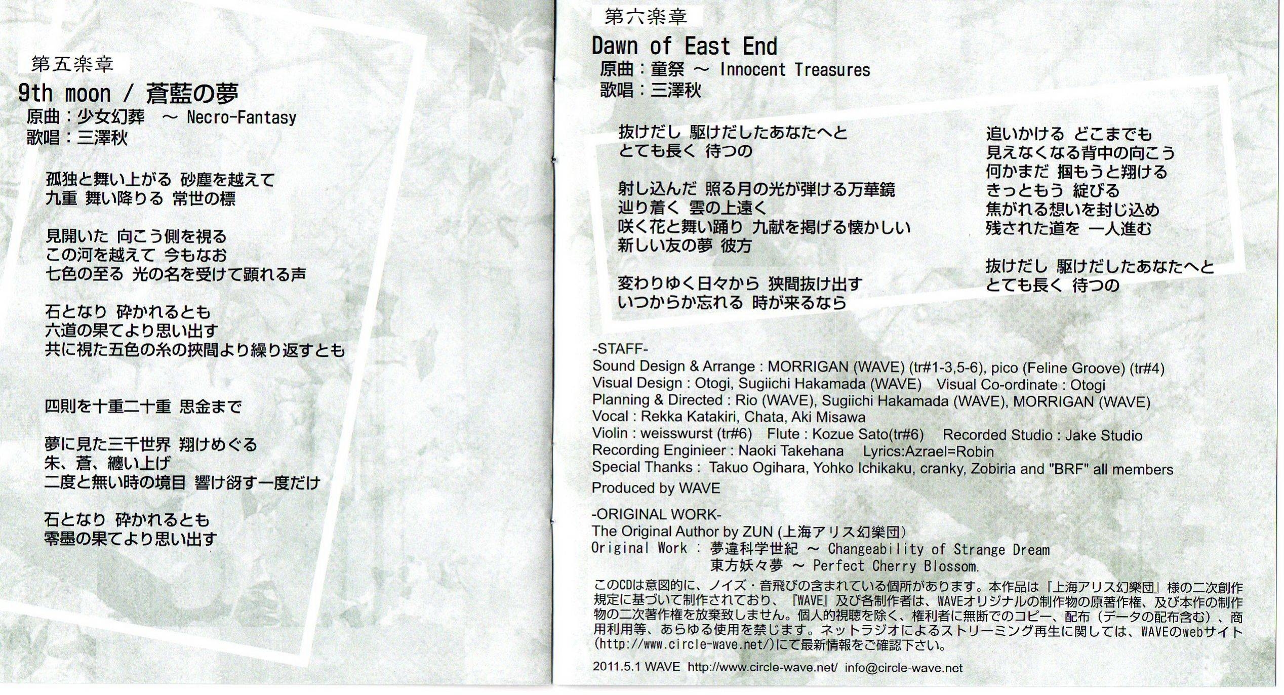 5. | 第五楽章 9th moon - 蒼藍の夢 | 4:42 | 9.62 MB | 32.26 MB | get_app | playlist_add |