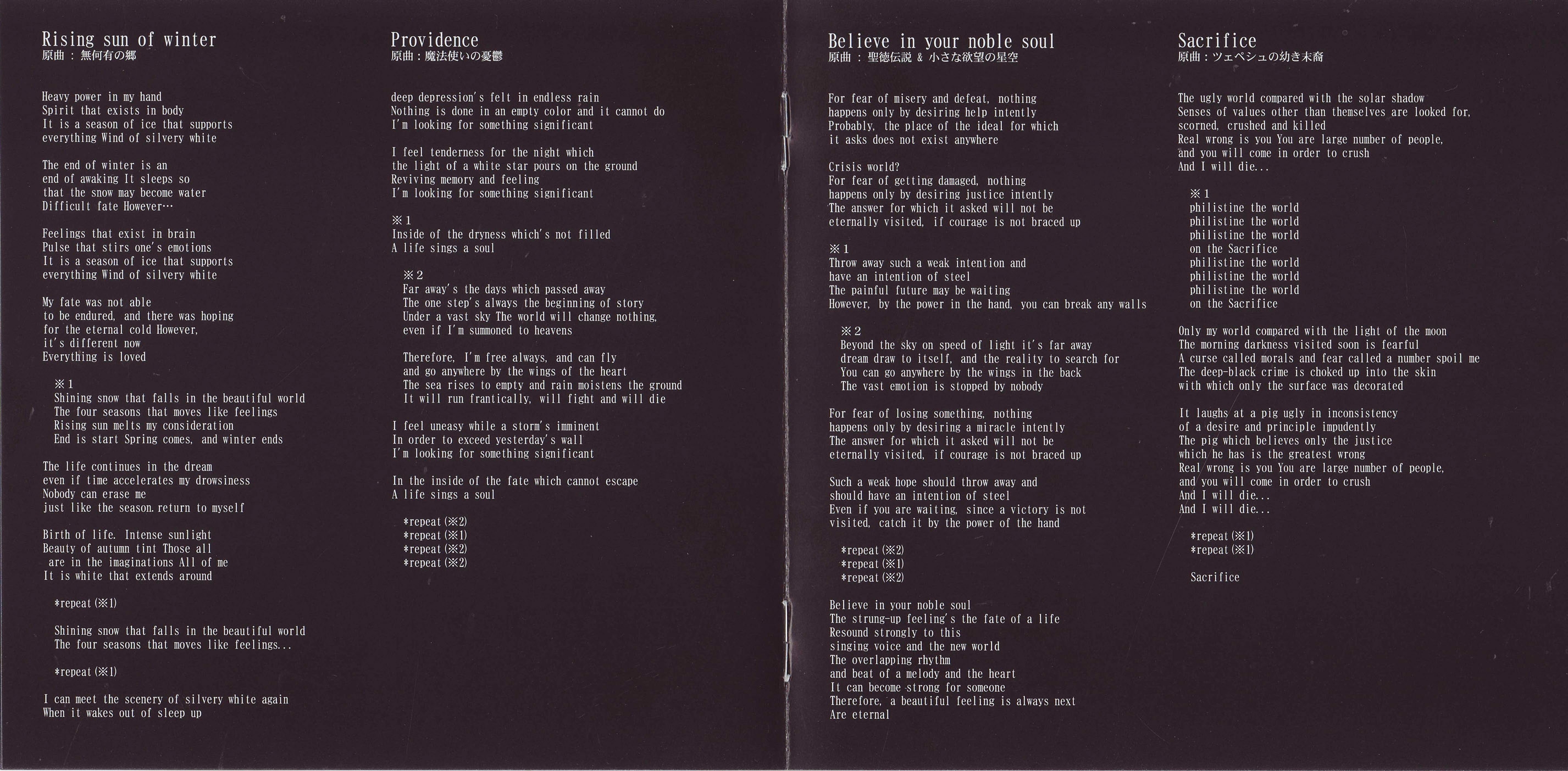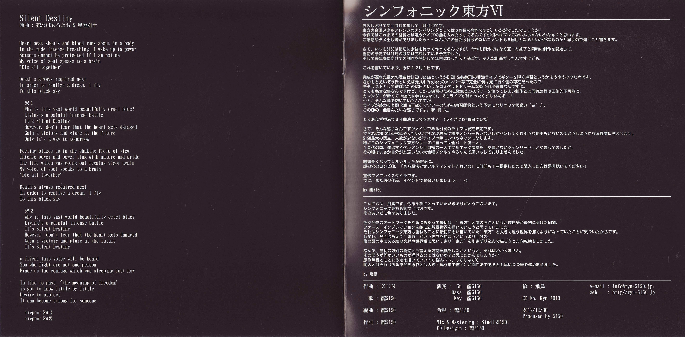 All arrangements, production, web editing, playing, and lyrics by ryu-5150.