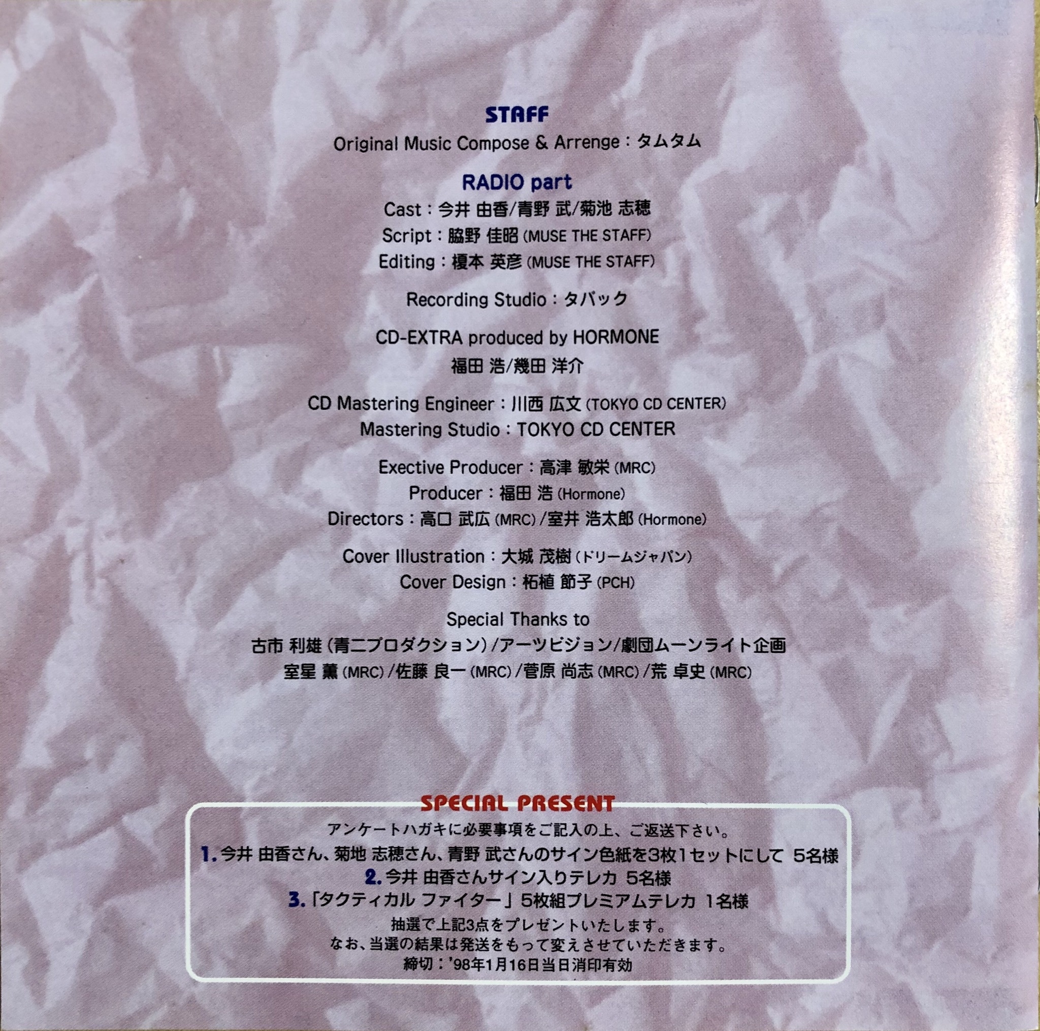 CD Mastering Engineer: Hirobumi Kawanishi (TOKYO CD CENTER)