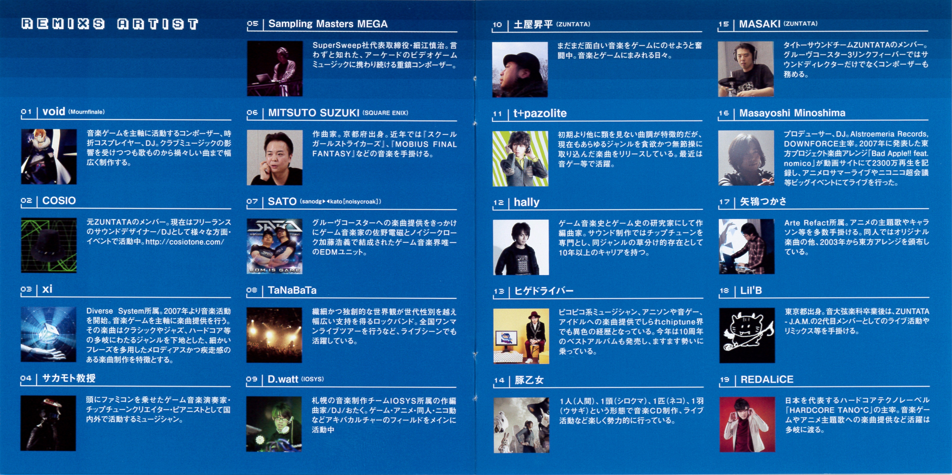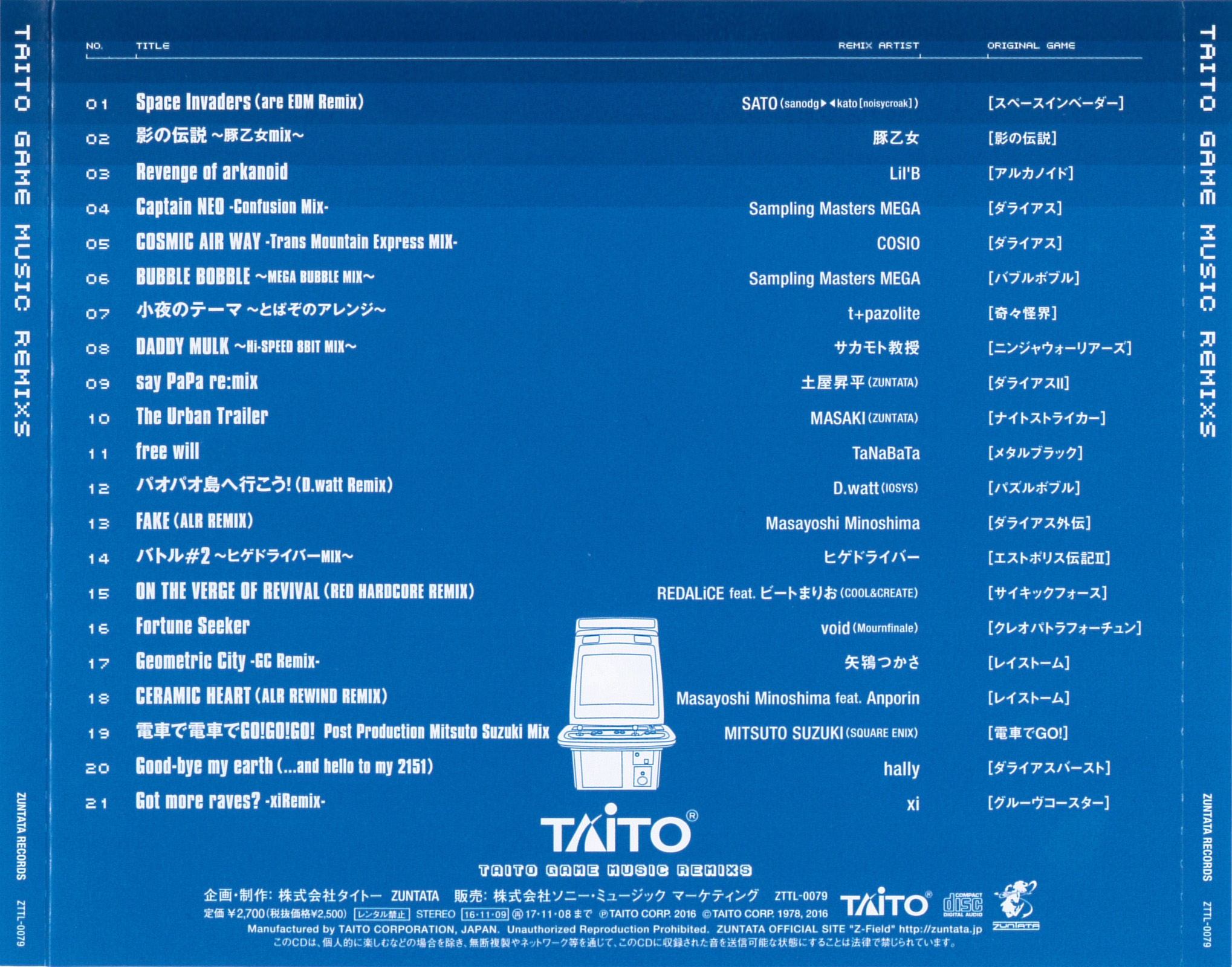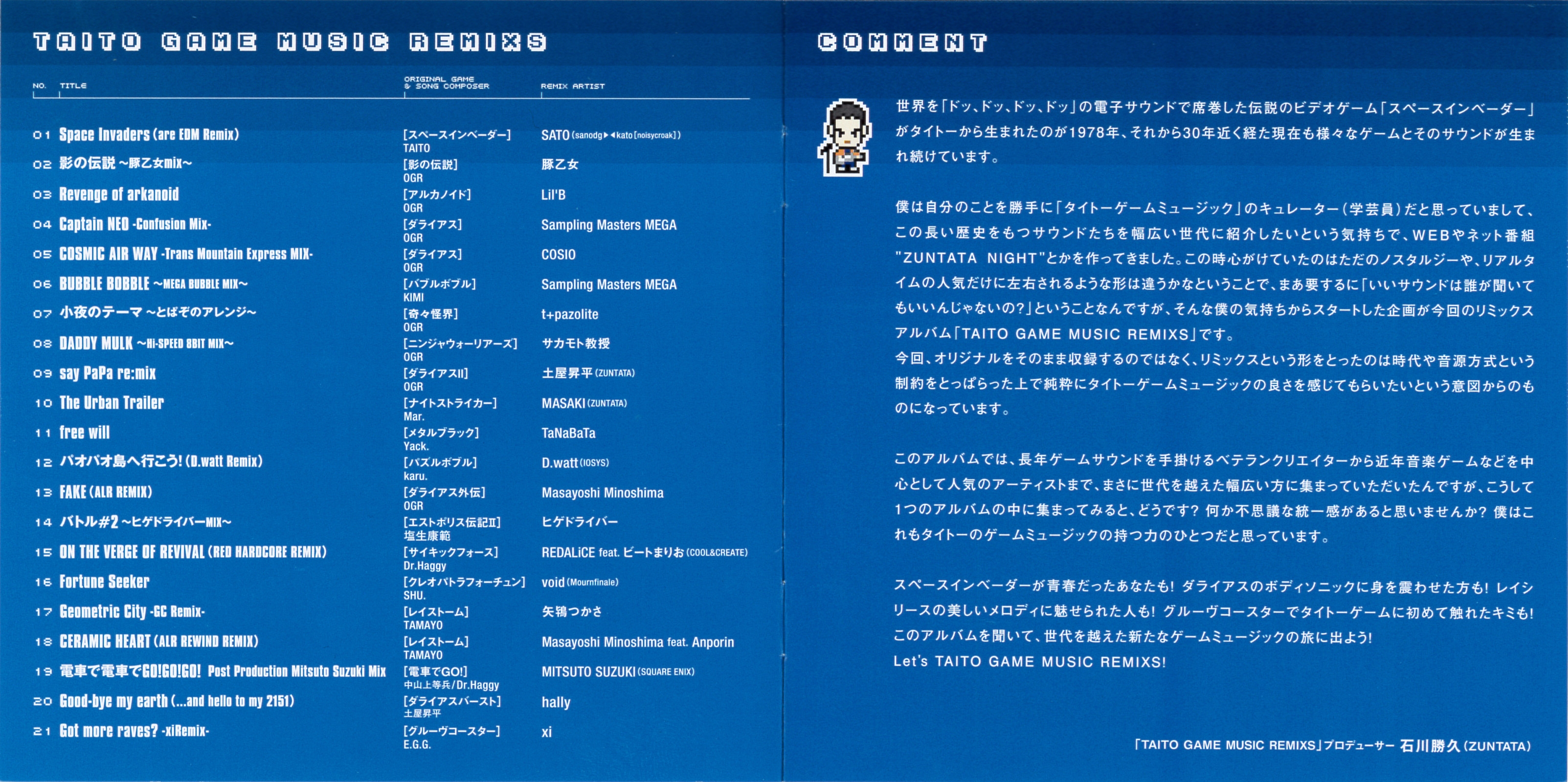 01 Original Game: Space Invaders / Song Composer: TAITO (Michiyuki Kamei) / Remix Artist: SATO (SANODG ▶◀ KATO [noisycroak])