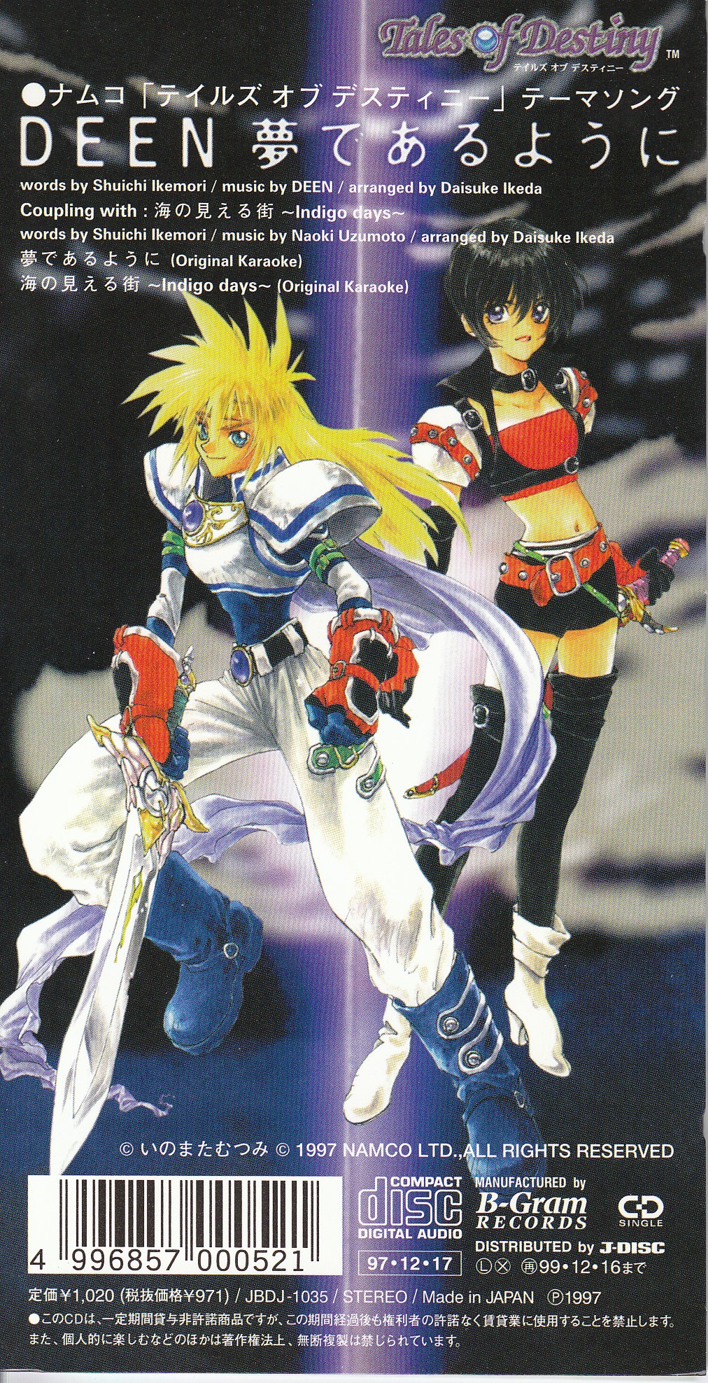 Track 1 "Like a Dream" featured as the OP in the Playstation 1 Game "Tales of Destiny".