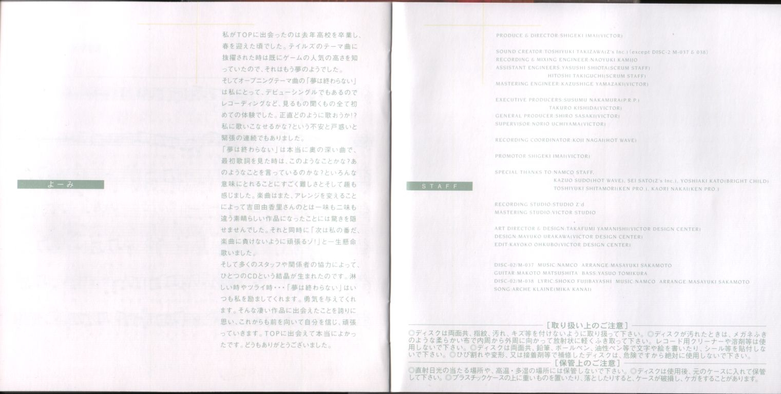 Special Thanks to NAMCO Staff, Kazuo Sudo (Hot Wave), Sei Sato (Z's Inc.), Yoshiaki Kato (Bright Child), Toshiyuki Shitamori (Ken Pro.), Kaori Nakai (Ken Pro.)