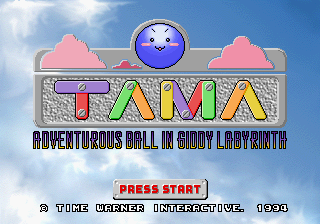 Tama: Adventurous Ball in Giddy Labyrinth is a videogame version of a wooden labyrinth game. Players have to guide Tama, a ball shaped being, to the goal of several different labyrinths. Players guide Tama by tilting the entire labyrinth at all sorts of angles. The main obstacle going against the player is the timer that is always counting down. Players have to reach the goal before the time is up. Another goal for the player to aim for is to have a high score by beating the levels (referred to as waves in the game) as fast as possible.
