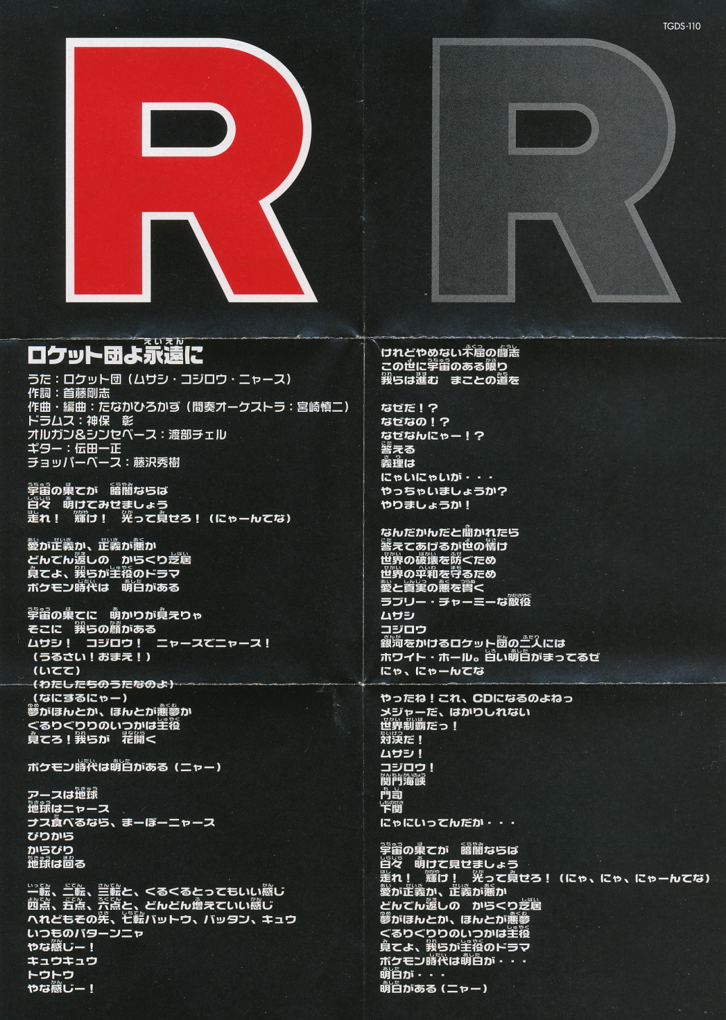 Vocals: Rocket-dan (Musashi (Megumi Hayashibara), Kojiro (Shinichiro Miki), Nyarth (Inuko Inuyama))