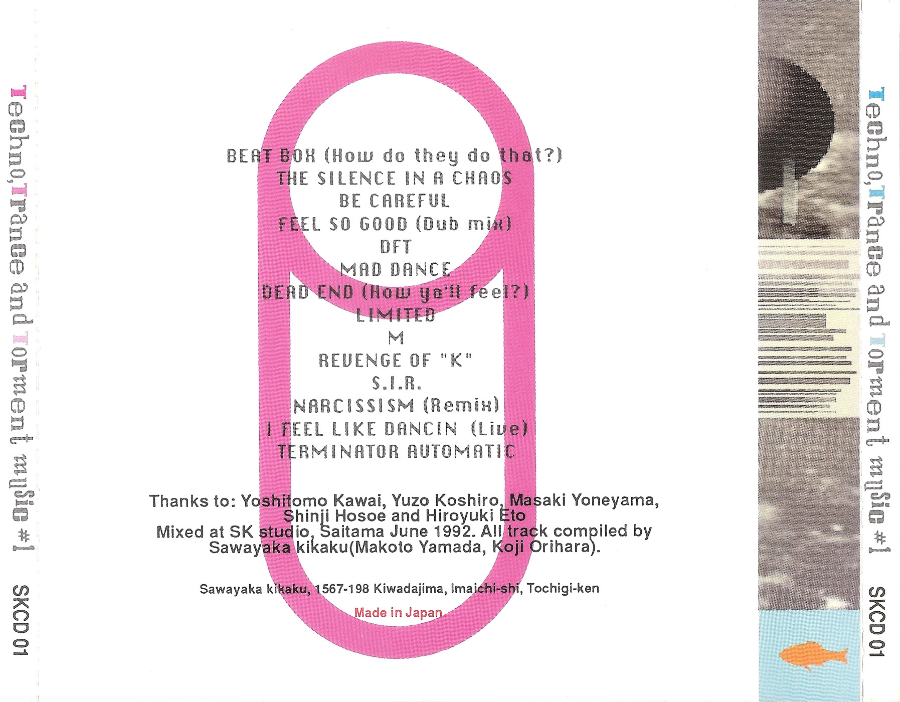Mixed at SK Studio, Saitama June 1992. All tracks compiled by Sawayaka kikaku (Makoto Yamada, Koji Orihara).