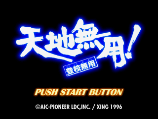 Tenchi Muyō! Tōkō Muyō is a Japanese-style adventure game based on the Tenchi Muyo anime series. The story centers around Tenchi's school life; while school is generally Tenchi's respite from his bizarre home life filled with beautiful ladies from other planets, one day Ryoko decides she wants to start attending Tenchi's school to try to get closer to him, and of course all the other ladies wind up there as well. The game plays out in standard visual novel style, with extended voiced story scenes occasionally punctuated by dialogue choices that affect how the following scene plays out.