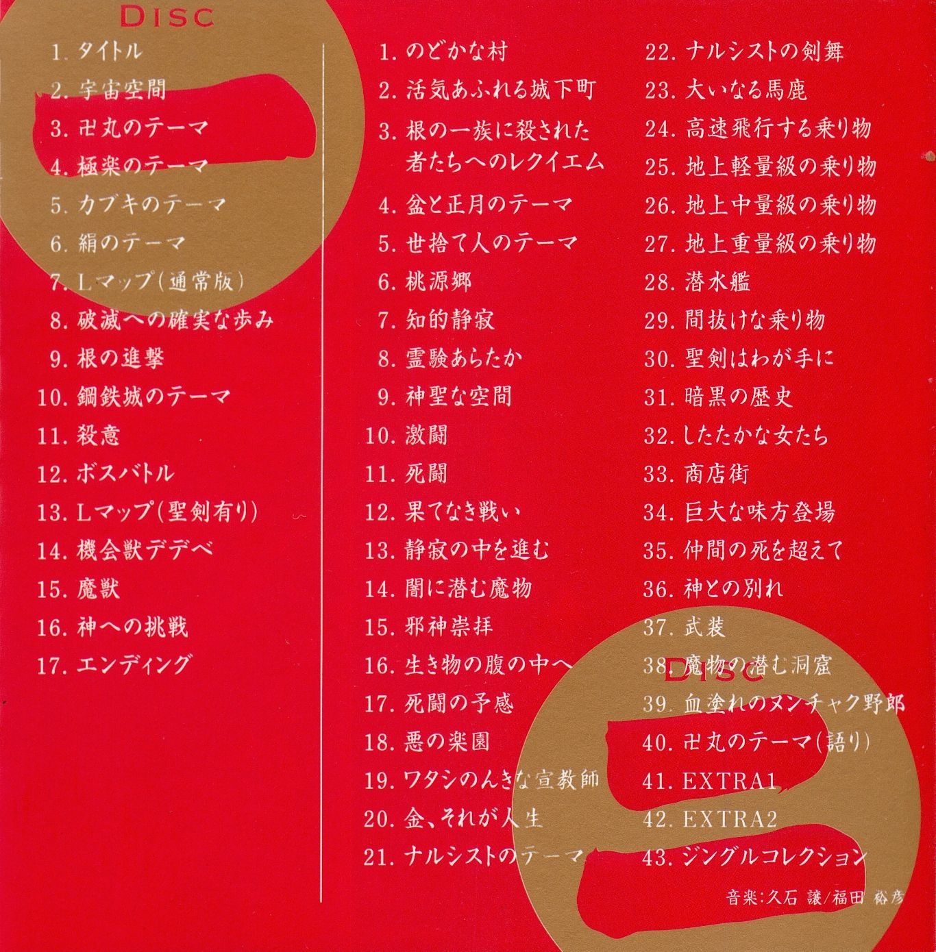 COMPOSER: Joe Hisaishi (Disc 1: 1 ~ 7 13 17 DISC 2: 40)