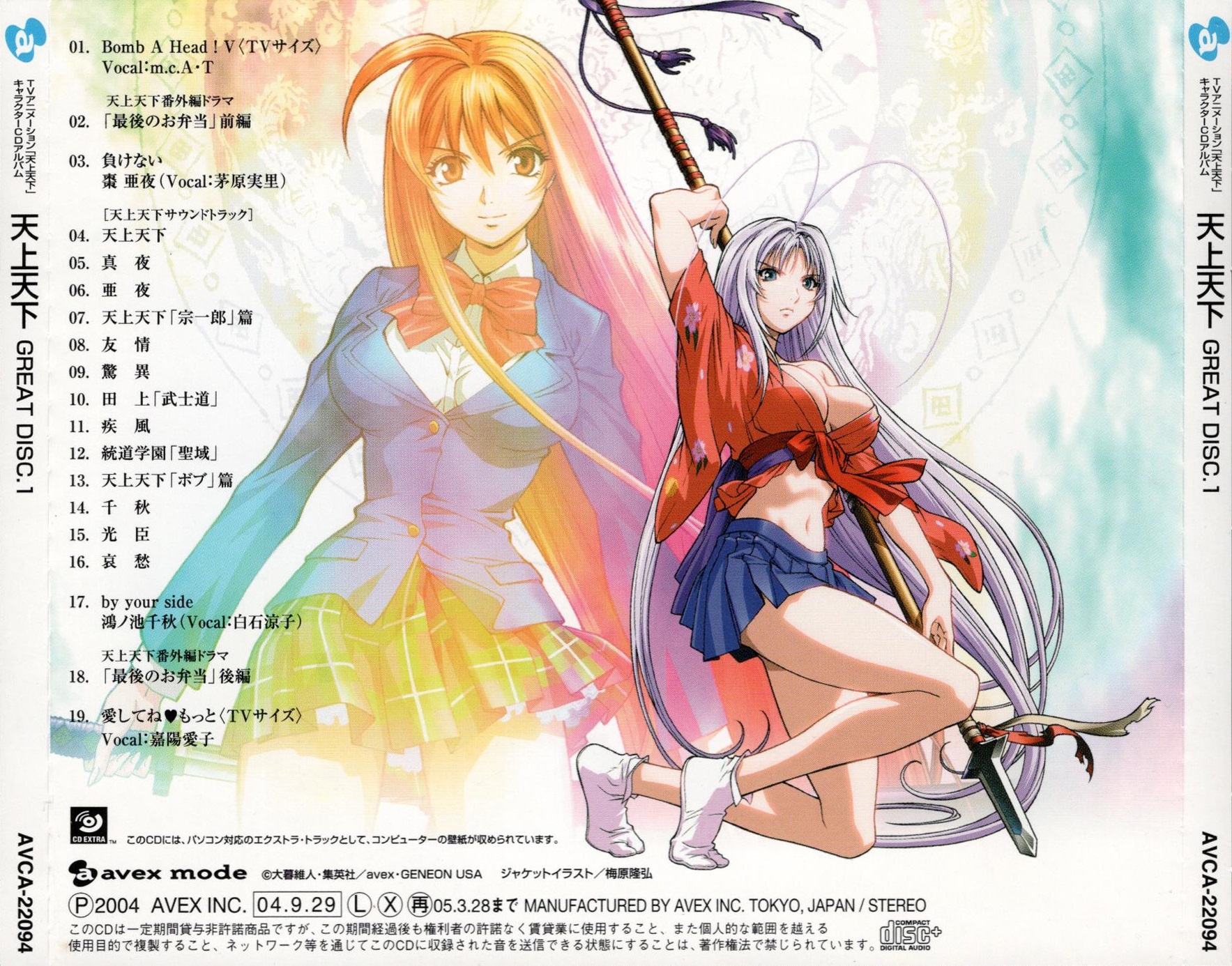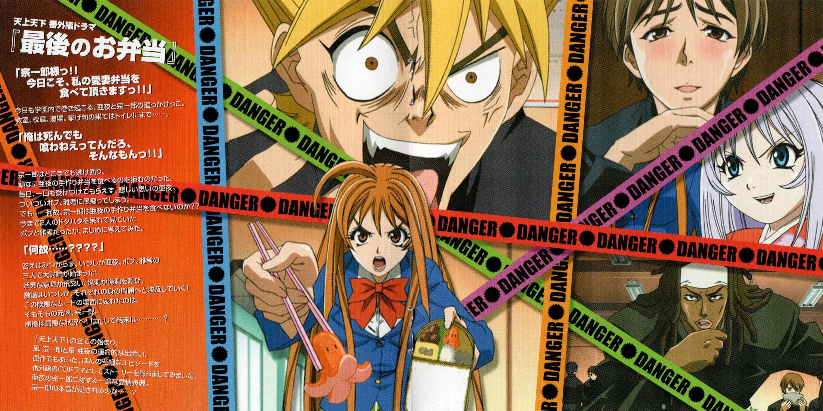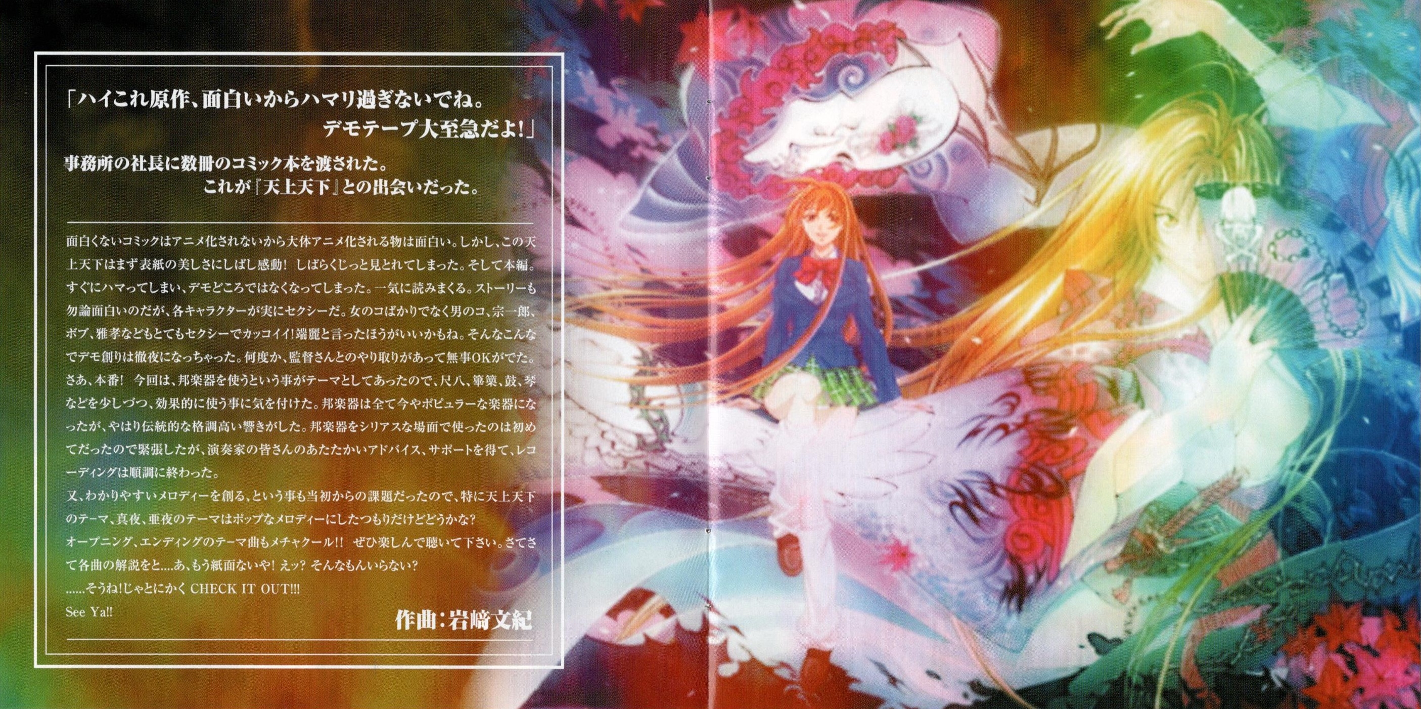 Special Thanks: Kensuke Ito (Ultra Jump Editorial Department), Youichi Hasegawa (Ultra Jump Editorial Department), Shigeaki Ouchi (SHUEISHA), Toshifumi Kawase, Akira Shinohara (MADHOUSE), Yuji Saito (IMAGINE), Masaru (IMAGINE), Atsushi Yamasaki (SOFT HOUSE UNO), Kenji-Master-Soeda (SOFT HOUSE UNO), and all "Tenjho Tenge" staff ...and all avex staff