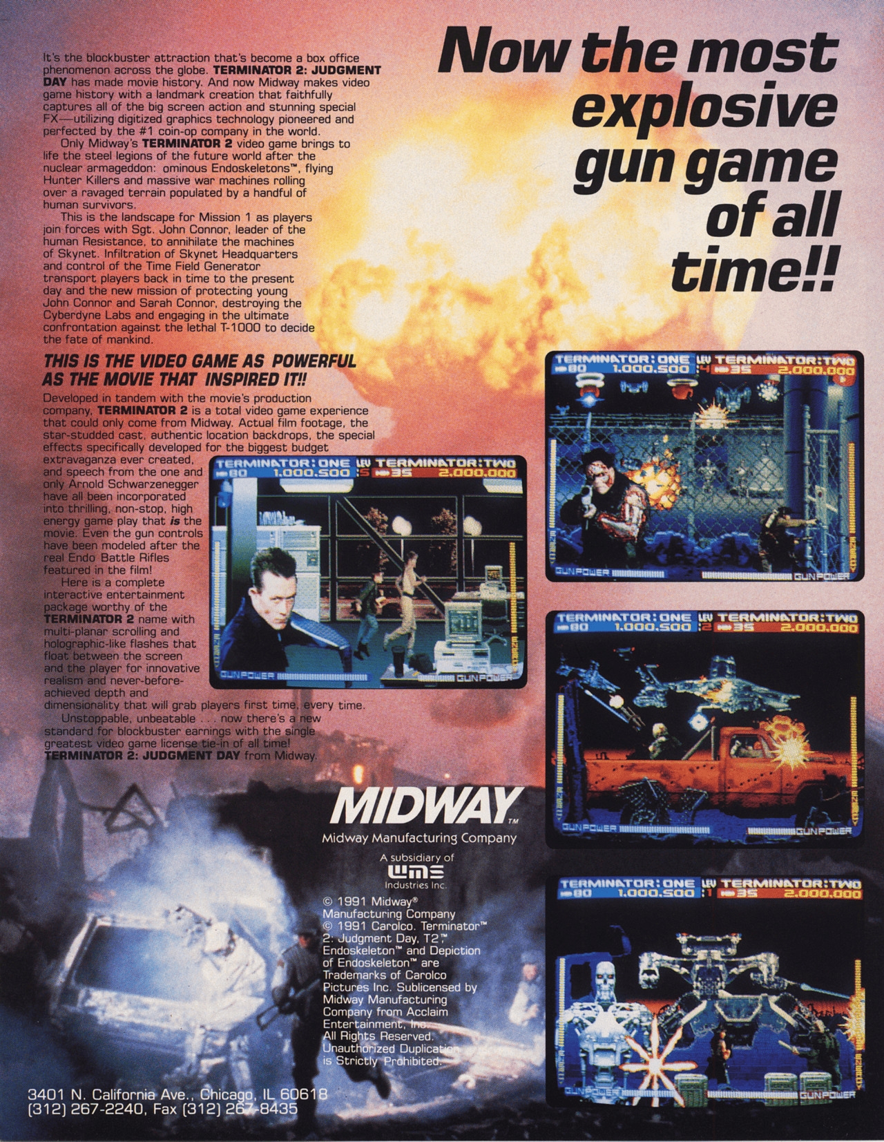 Terminator 2: Judgment Day is a gun shooting video game based on the film of the same name produced by Midway for the arcades in 1991.