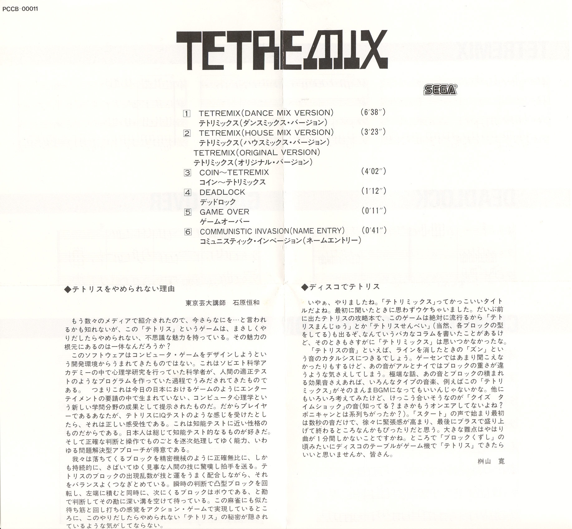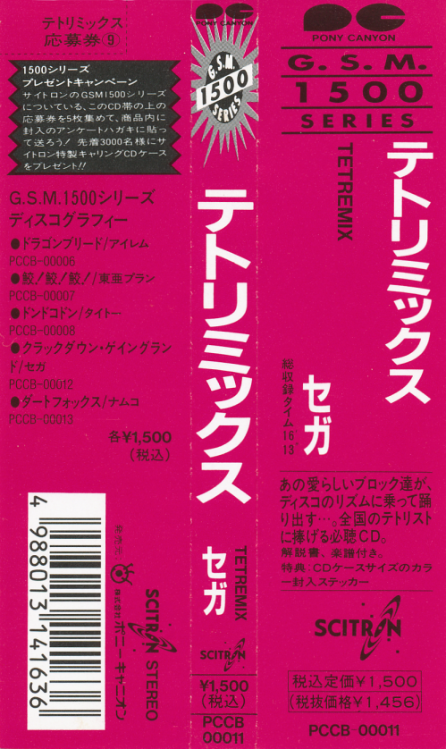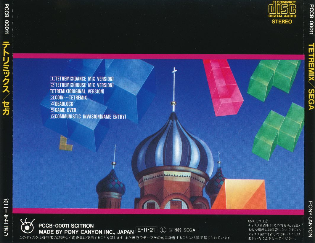 This album contains music from the arcade version of Tetris published by Sega in 1988.