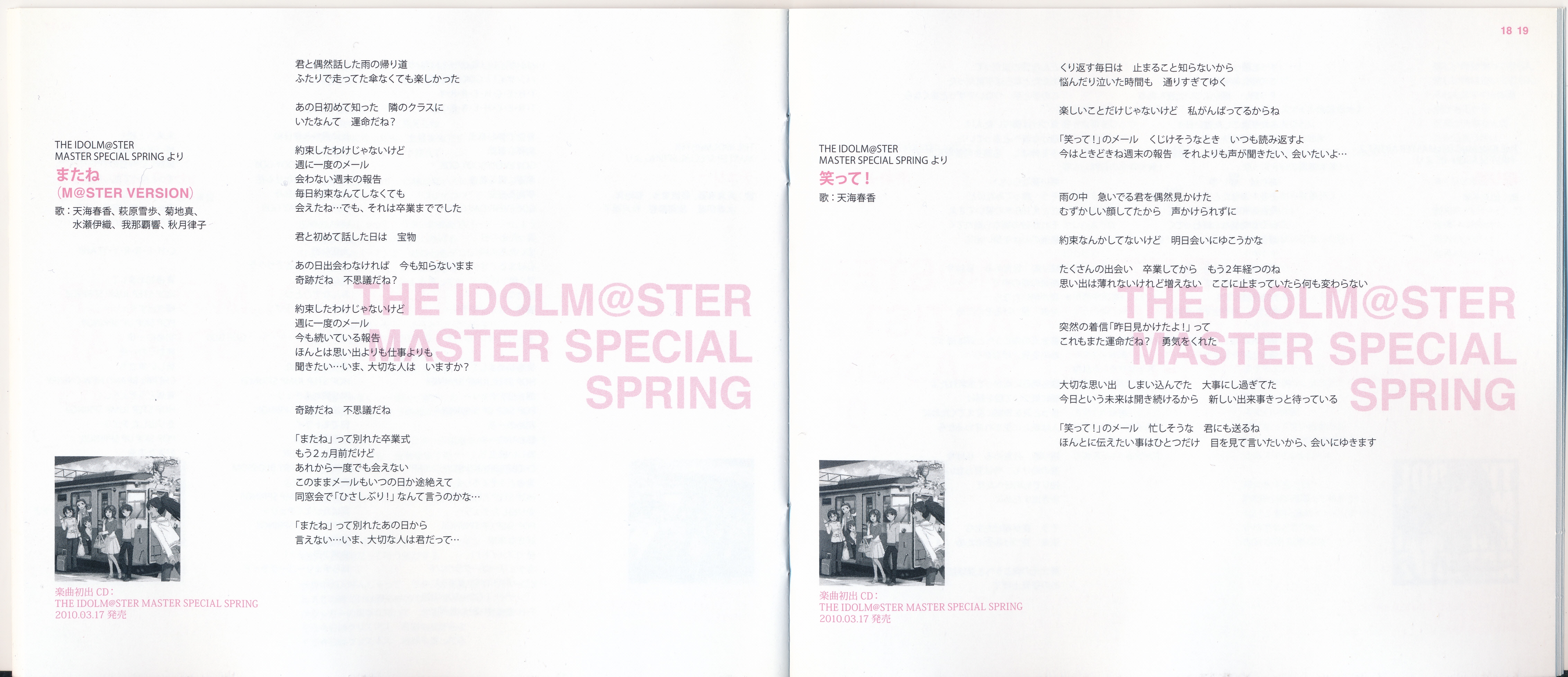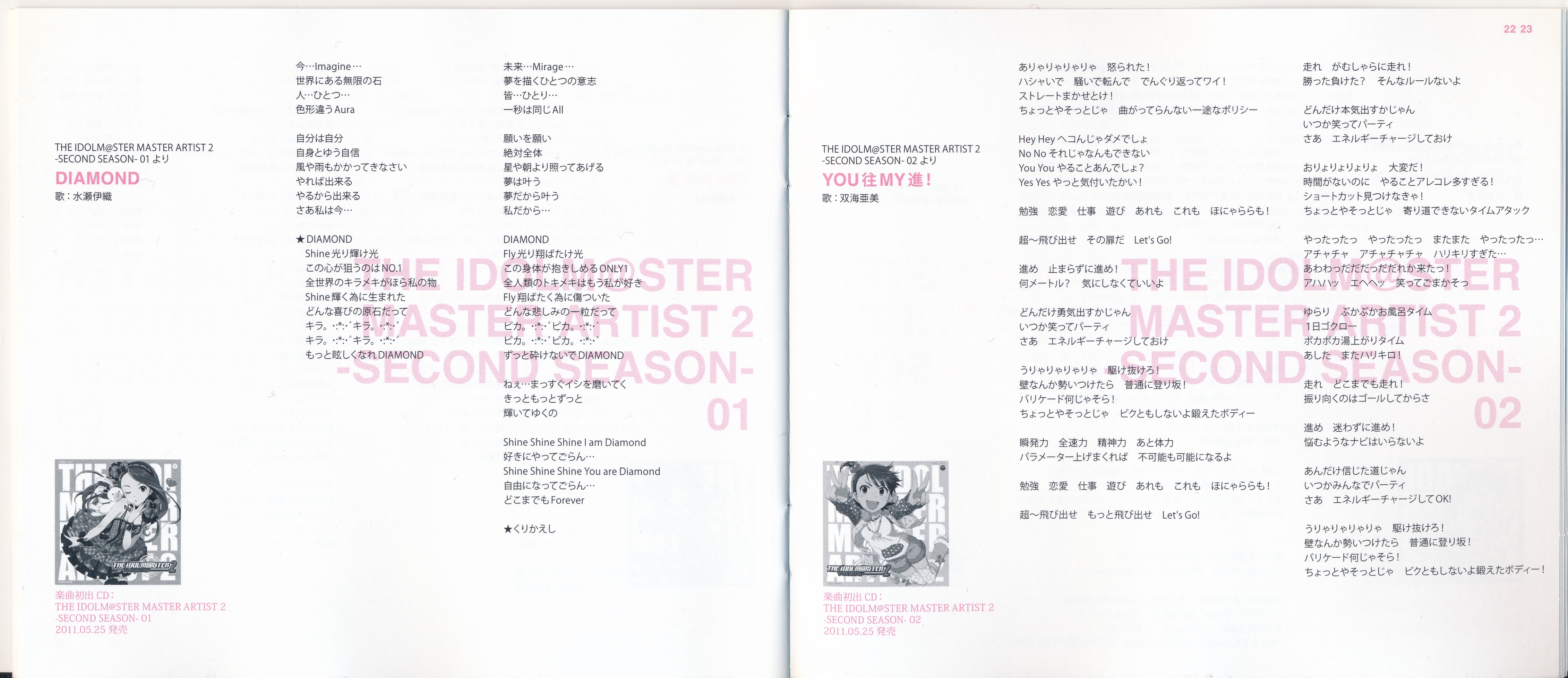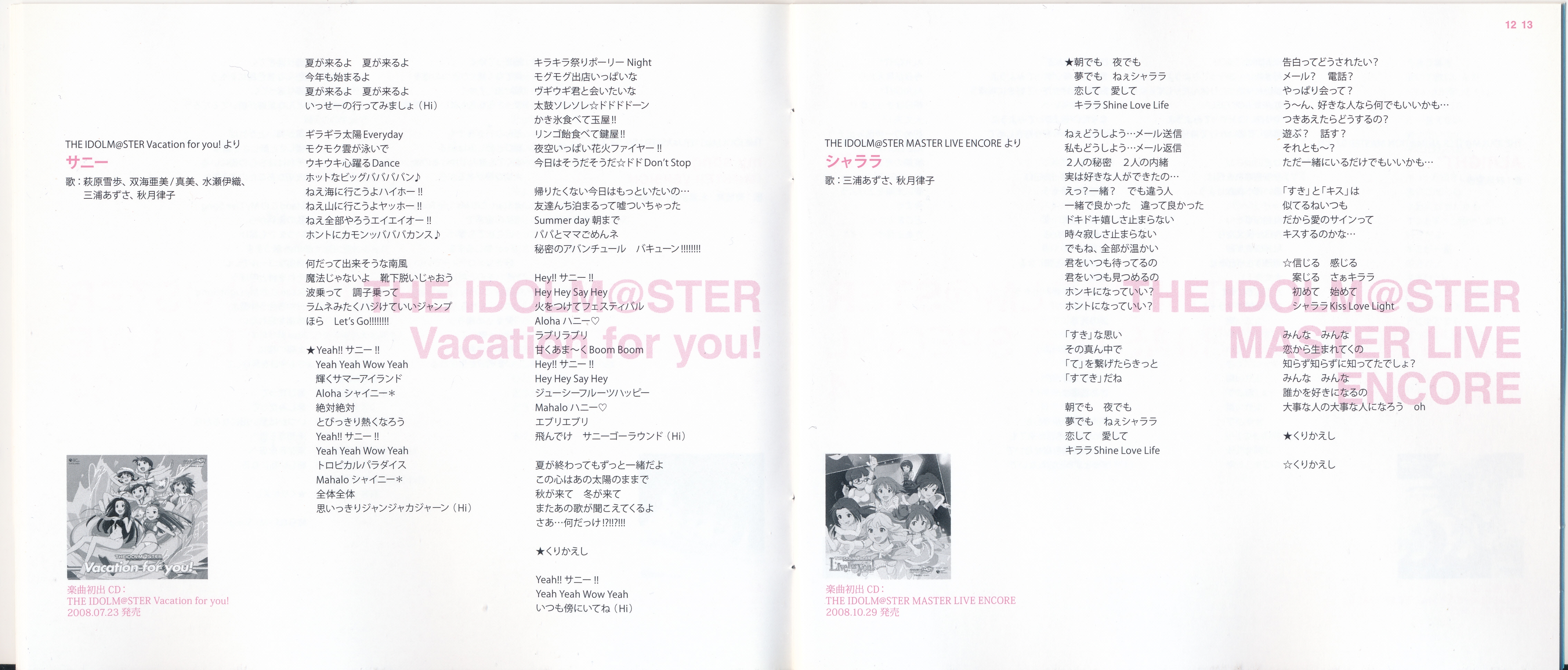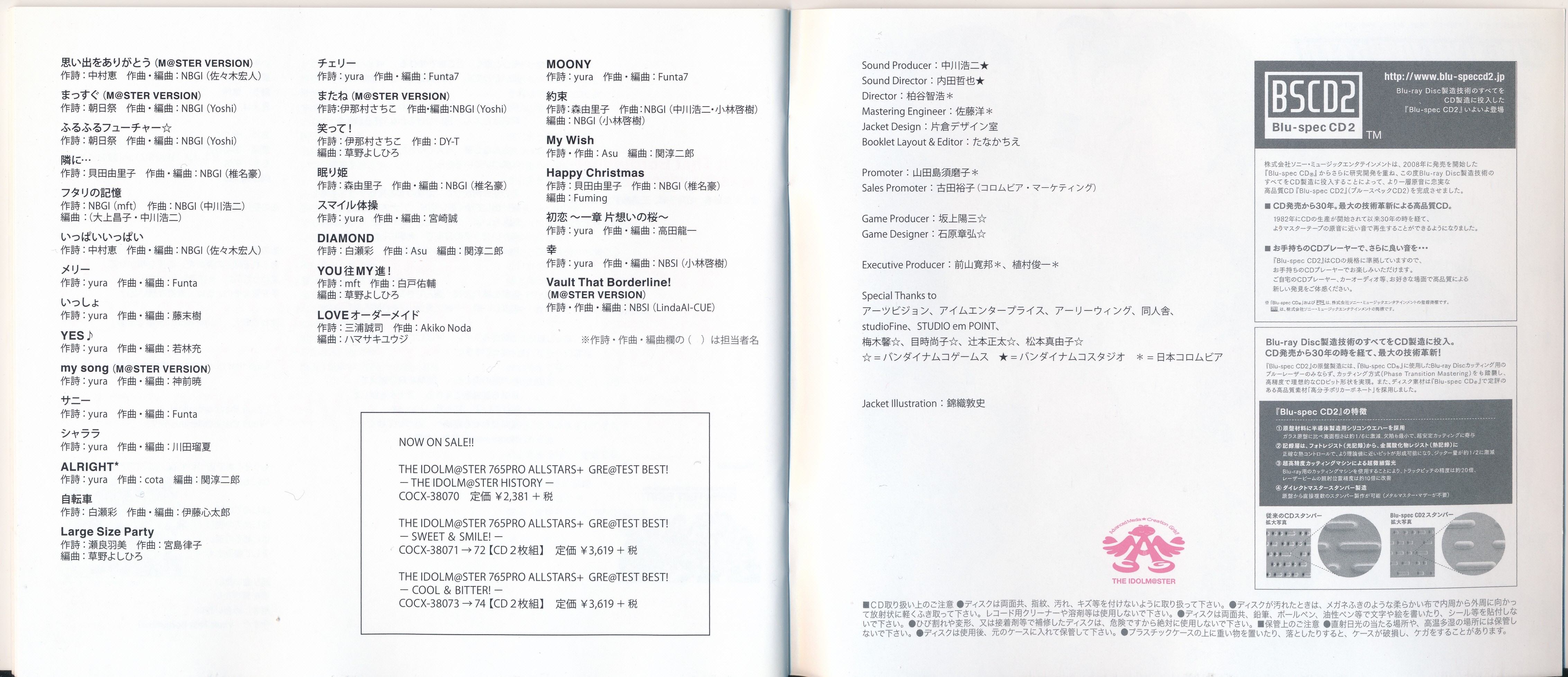 Vocals: Miki Hoshii (CV: Akiko Hasegawa), Yayoi Takatsuki (CV: Mayako Nigo), Yukiho Hagiwara (CV: Azumi Asakura), Makoto Kikuchi (CV: Hiromi Hirata), Iori Minase (CV: Rie Kugimiya), Ritsuko Akizuki (CV: Naomi Wakabayashi)