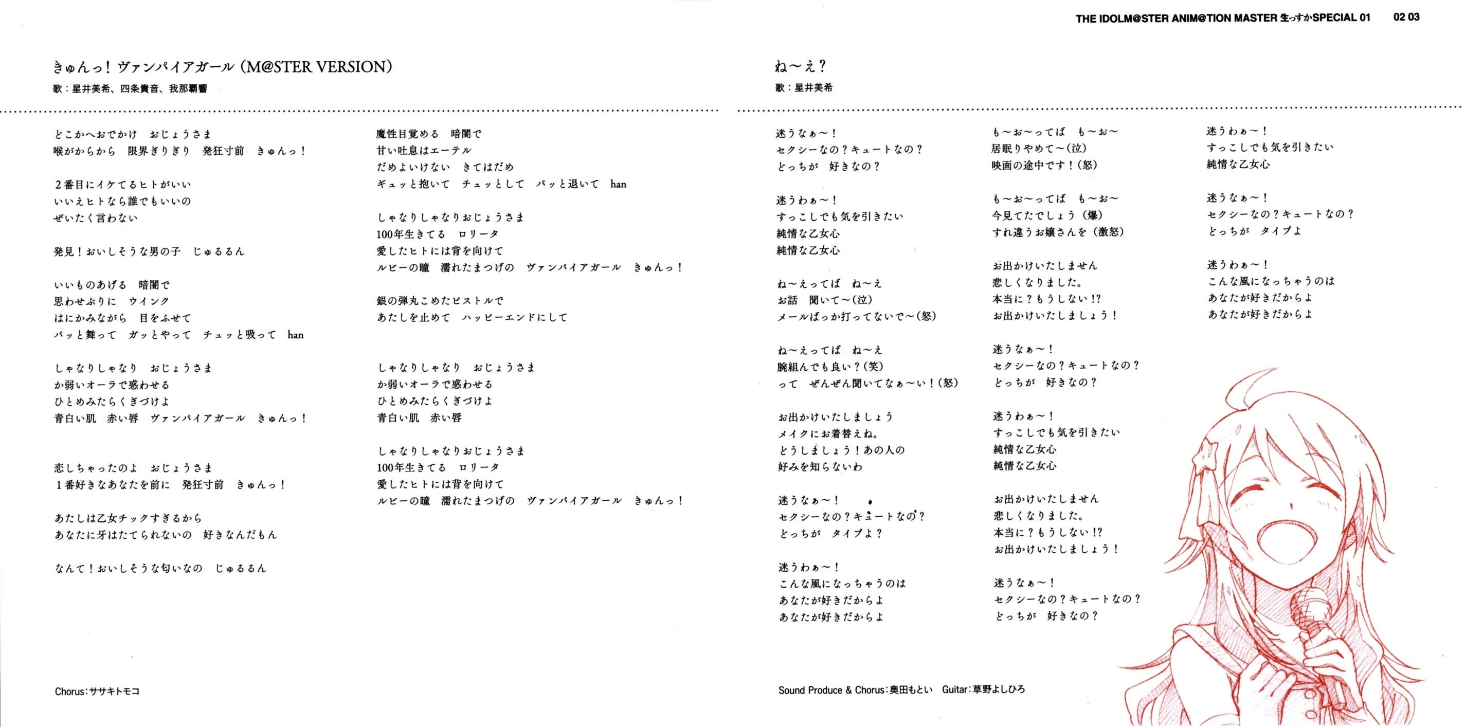 Vocals, Talk: Miki Hoshii (CV: Akiko Hasegawa), Takane Shijou (CV: Yumi Hara), Hibiki Ganaha (CV: Manami Numakura)