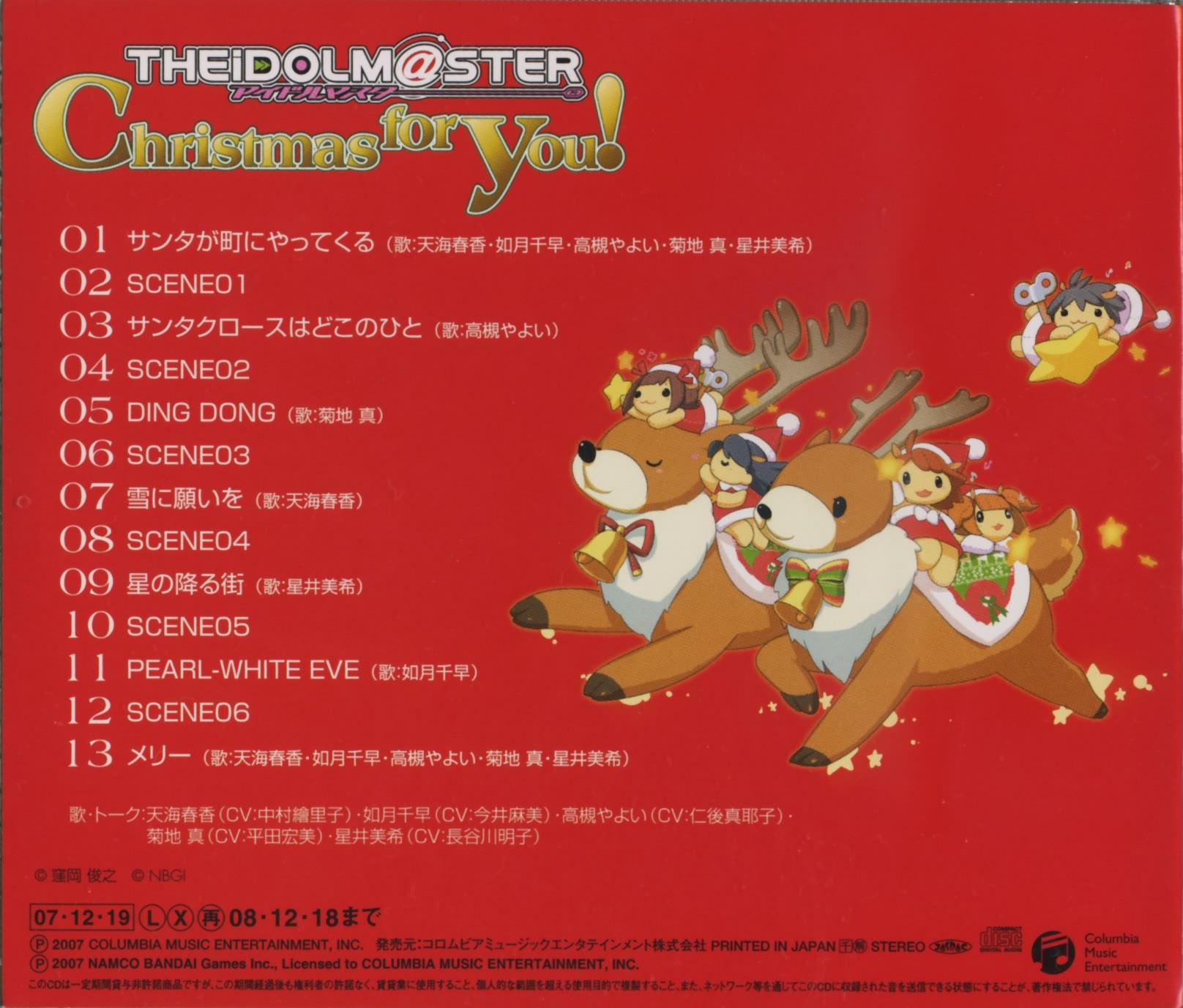 Vocals: Haruka Amami (CV: Eriko Nakamura), Chihaya Kisaragi (CV: Asami Imai), Yayoi Takatsuki (CV: Mayako Nigo), Makoto Kikuchi (CV: Hiromi Hirata), Miki Hoshii (CV: Akiko Hasegawa)