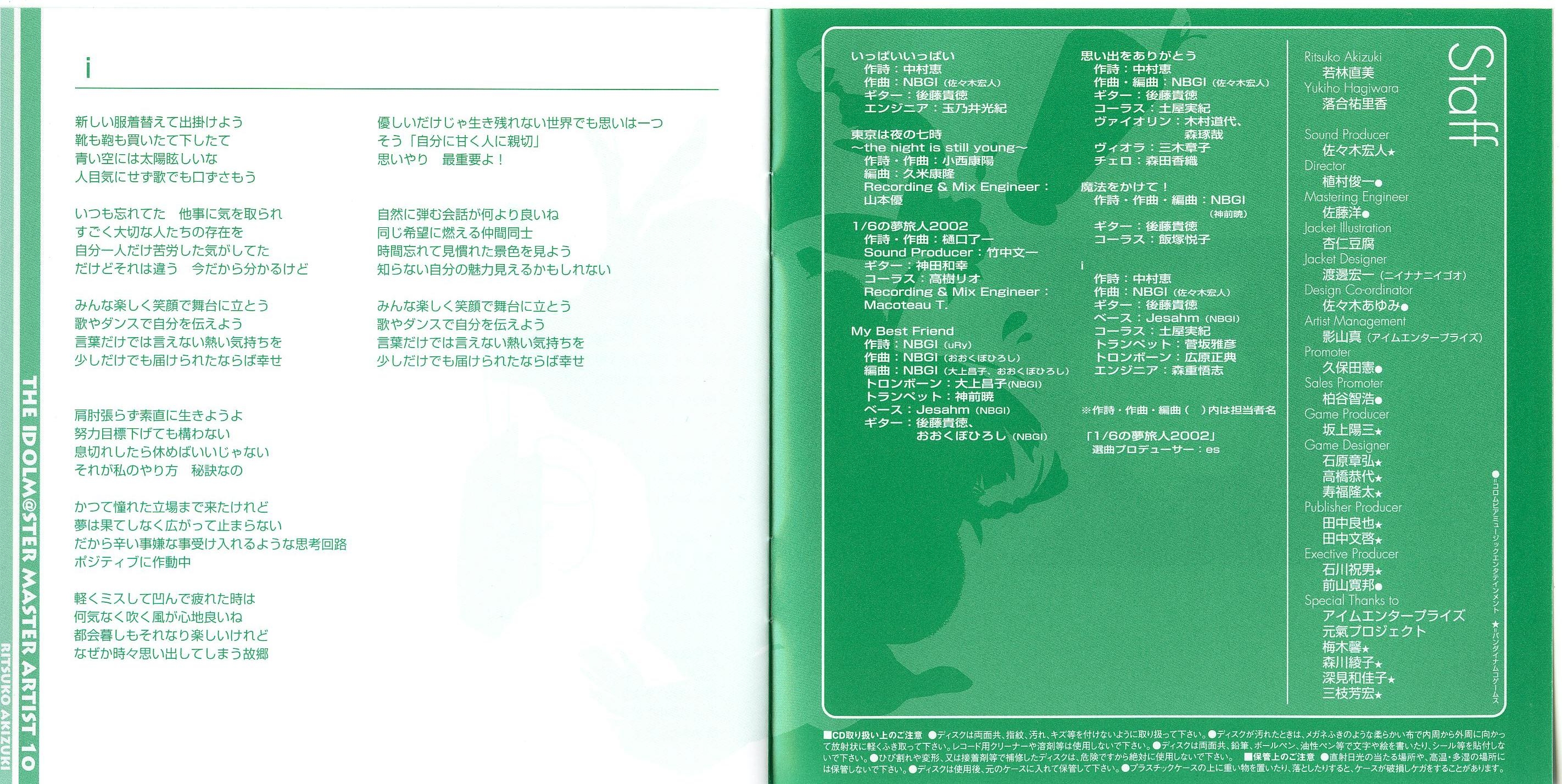 Special Thanks to: I'm Enterprise, GENKI PROJECT, Kei Umeki★, Ayako Morikawa★, Wakako Fukami★, Yoshihiro Mieda★
