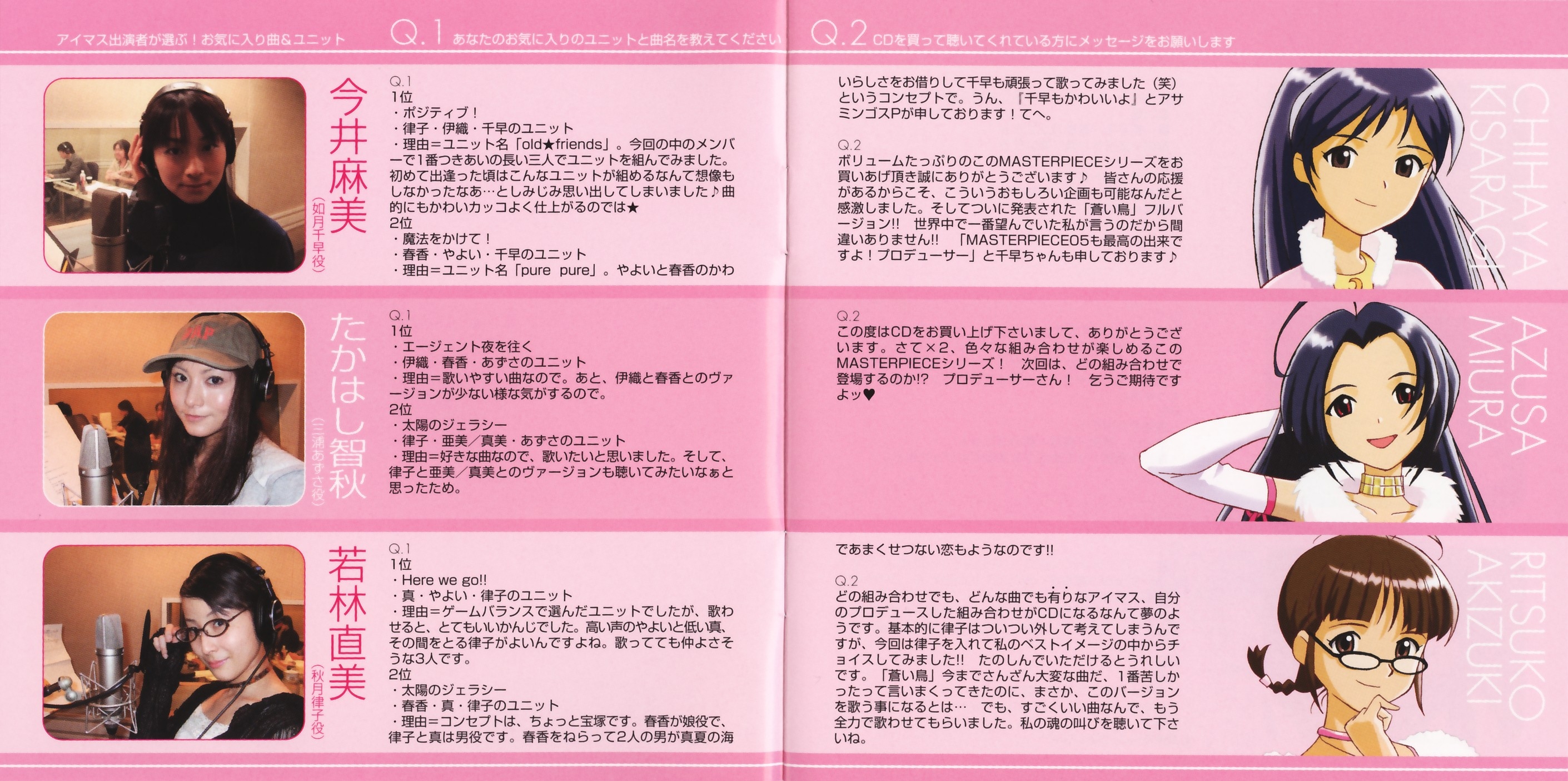 Vocals: Chihaya Kisaragi (CV: Asami Imai), Azusa Miura (CV: Chiaki Takahashi), Ritsuko Akizuki (CV: Naomi Wakabayashi)