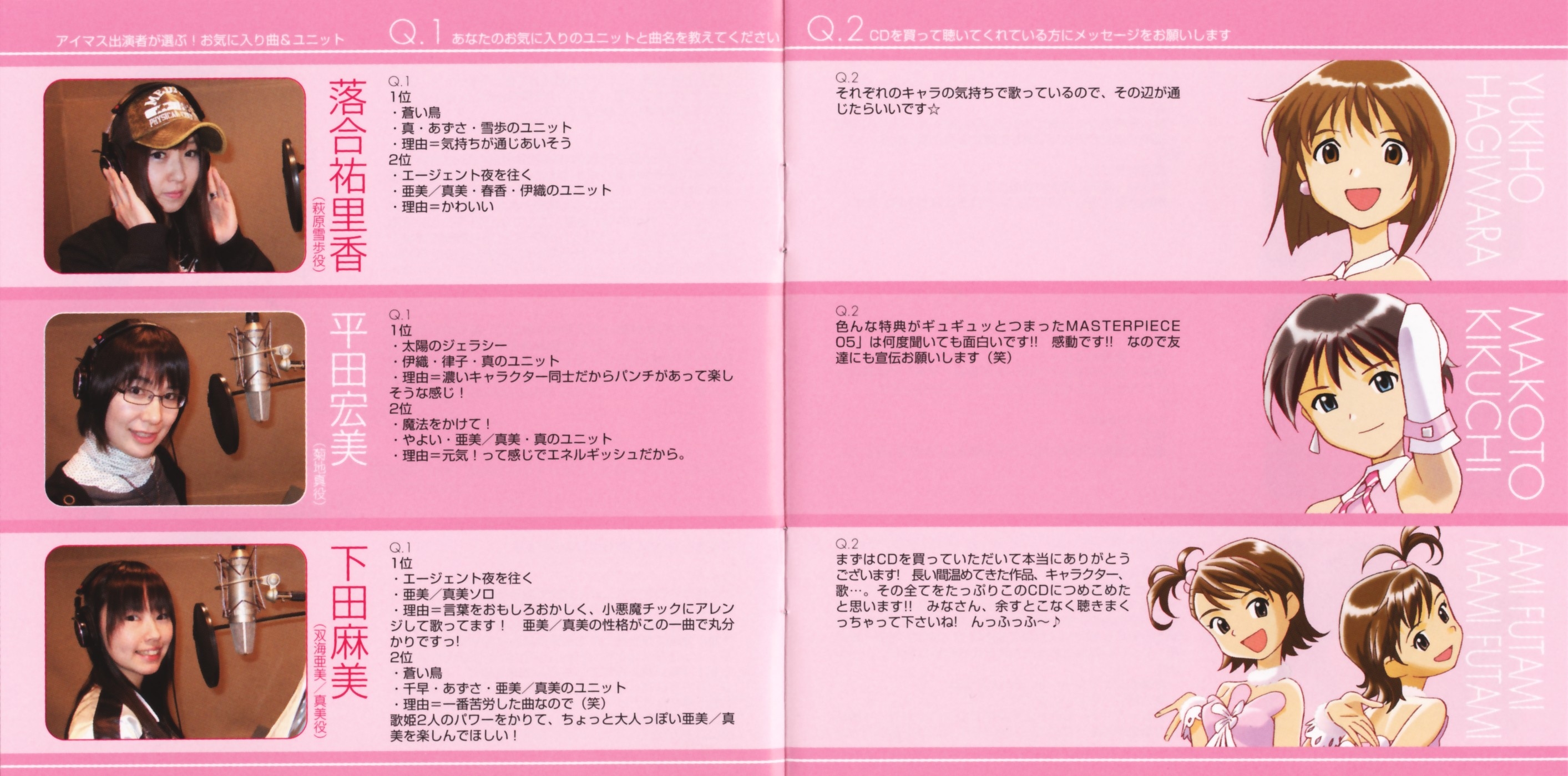 Vocals: Yukiho Hagiwara (CV: Yurika Ochiai), Makoto Kikuchi (CV: Hiromi Hirata), Ami/Mami Futami (CV: Asami Shimoda)