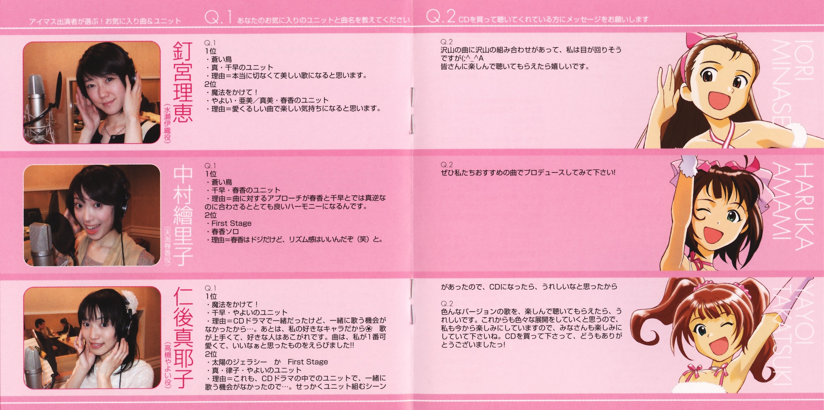 Vocals: Iori Minase (CV: Rie Kugimiya), Haruka Amami (CV: Eriko Nakamura), Yayoi Takatsuki (CV: Mayako Nigo)