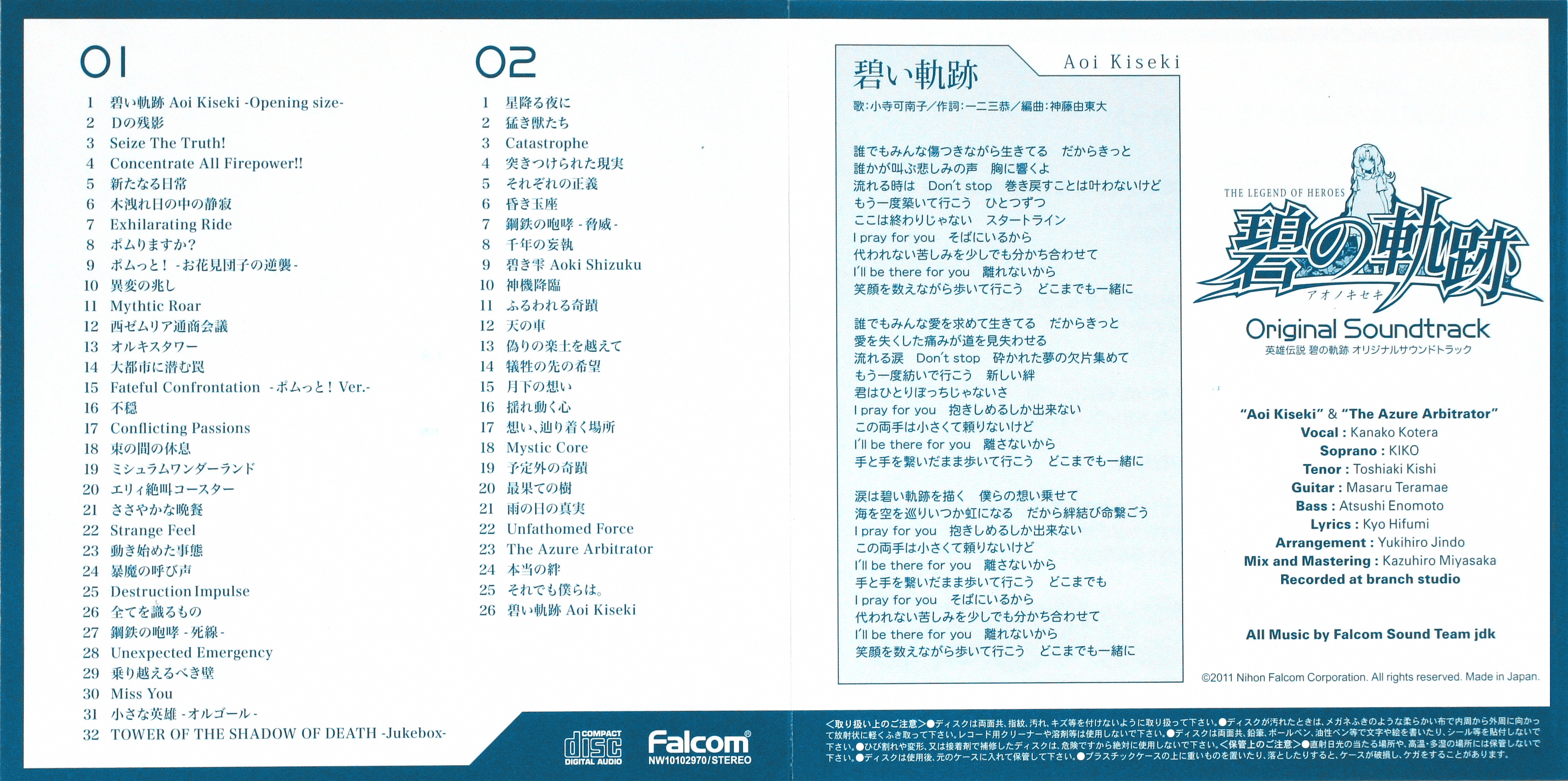 All Music by Falcom Sound Team jdk (Hayato Sonoda, Takahiro Unisuga, Saki Momiyama), with outsourced work by Yukihiro Jindo and uncredited music from Masanori Osaki/Ryo Takeshita.