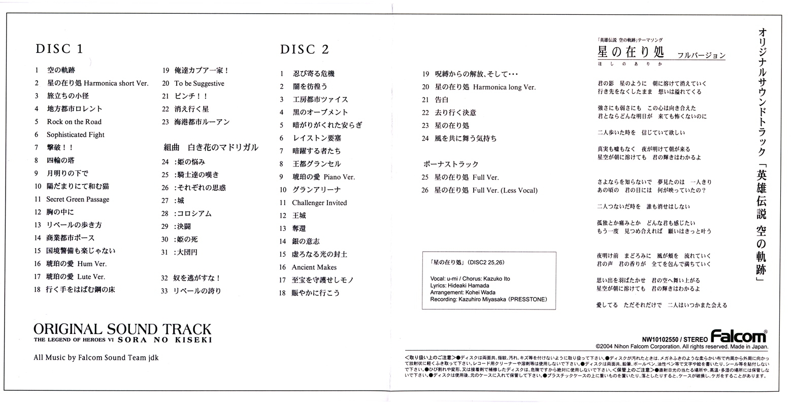 Liner Notes by Falcom Sound Team jdk.