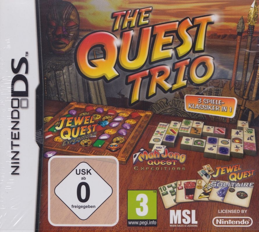 The Quest Trio is a video game for the Nintendo DS. It was published by Activision in 2008. The "Trio" part of the game's name refers to the 3 selectable games: Jewel Quest II: Jewel Quest Expeditions, Jewel Quest Solitaire, and Mah Jong Quest Expeditions.