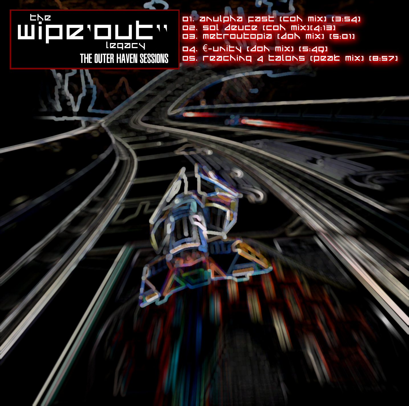 This EP collects all four tracks that ended up remixed into two "Outer Haven". "Anulpha Fast" and "Sol Deuce" ended up in "Conquest of Outer Haven" back in 2013 while the faster "MetroUtopia" and "€-Unity" added the mayhem to 2014's "Destruction of Outer Haven". Added as bonus is the extended "Reaching 4 Talons", a track that was a bonus in the original 2012 "The Wipeout Legacy XL" special edition remix disc