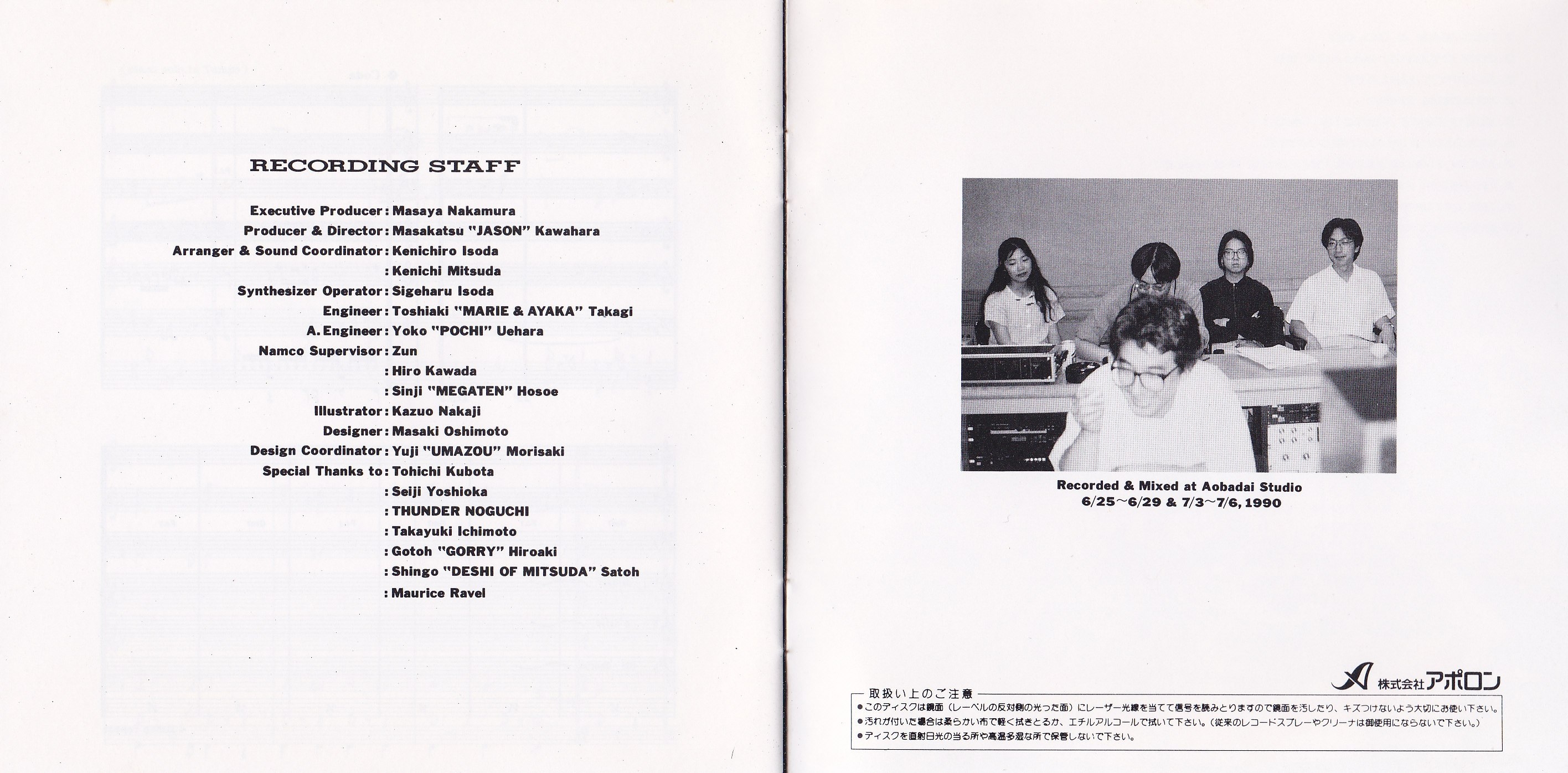Special Thanks to: Tohichi Kubota, Seiji Yoshioka, THUNDER NOGUCHI, Takayuki Ichimoto, Gotoh "GORRY" Hiroaki, Shingo "DESHI OF MITSUDA" Satoh, Maurice Ravel